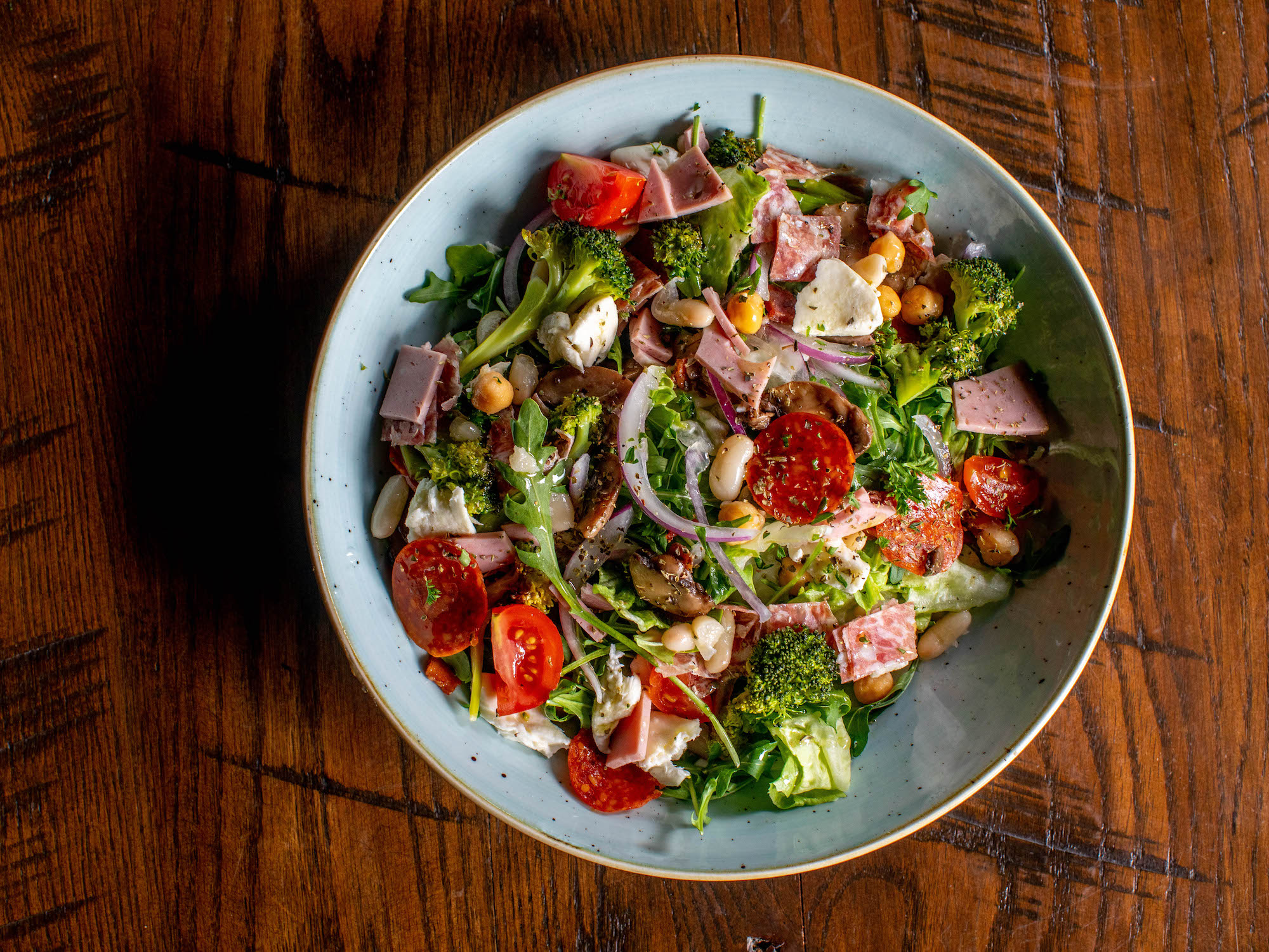 Sandwiches run the gamut from classic double cheeseburger and fried chicken sandwich to chicken parm and crispy short rib drenched with poblano cheese and topped with wild mushrooms (their version of a cheesesteak). There’s also a lineup of dependable salads.