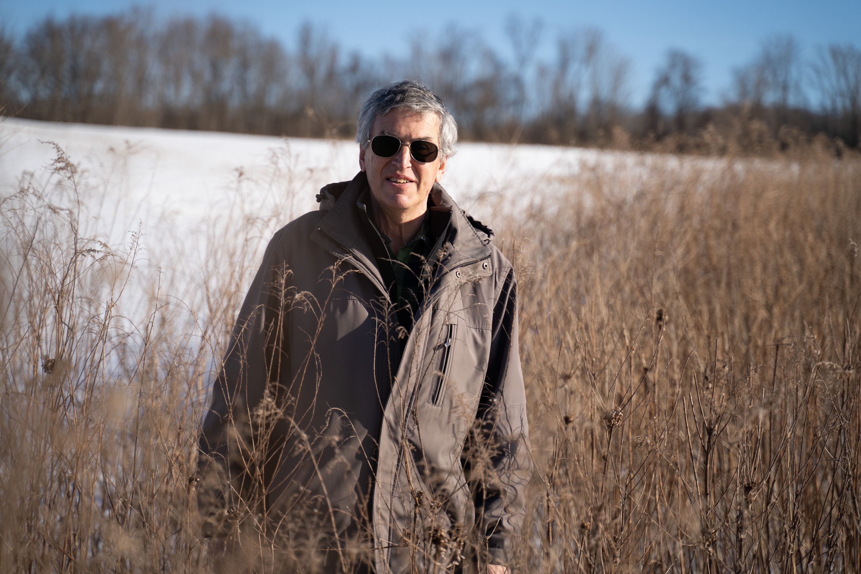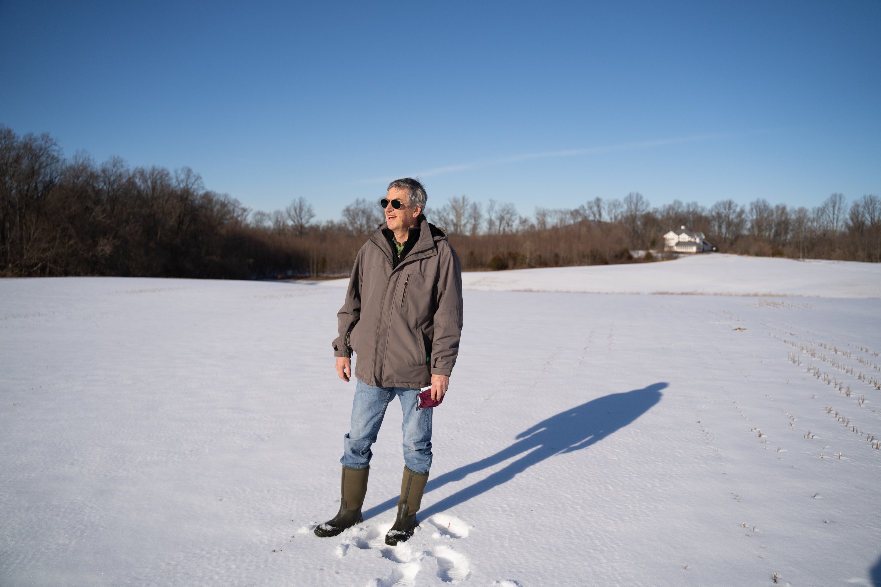 “What you see here are the remains of last year’s crop of soybeans,” Boucher says, his boots crunching over the soy stubble poking through the snow. He comes to a high point in the rolling fields, where the sun, reflecting off the snow, is blinding.