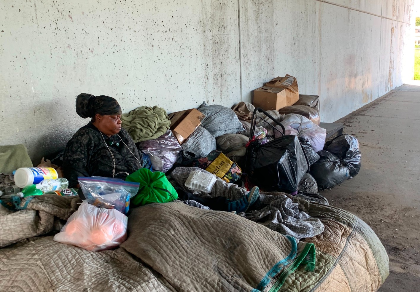 For Jackson, the underpass is part of an unavoidable route. He has to pass it on his way to his aunt’s house or to fill up at the gas station. He hasn’t driven by since the vigil on Saturday, but like many residents, he says he knows it’ll feel empty without his aunt, next time he passes.