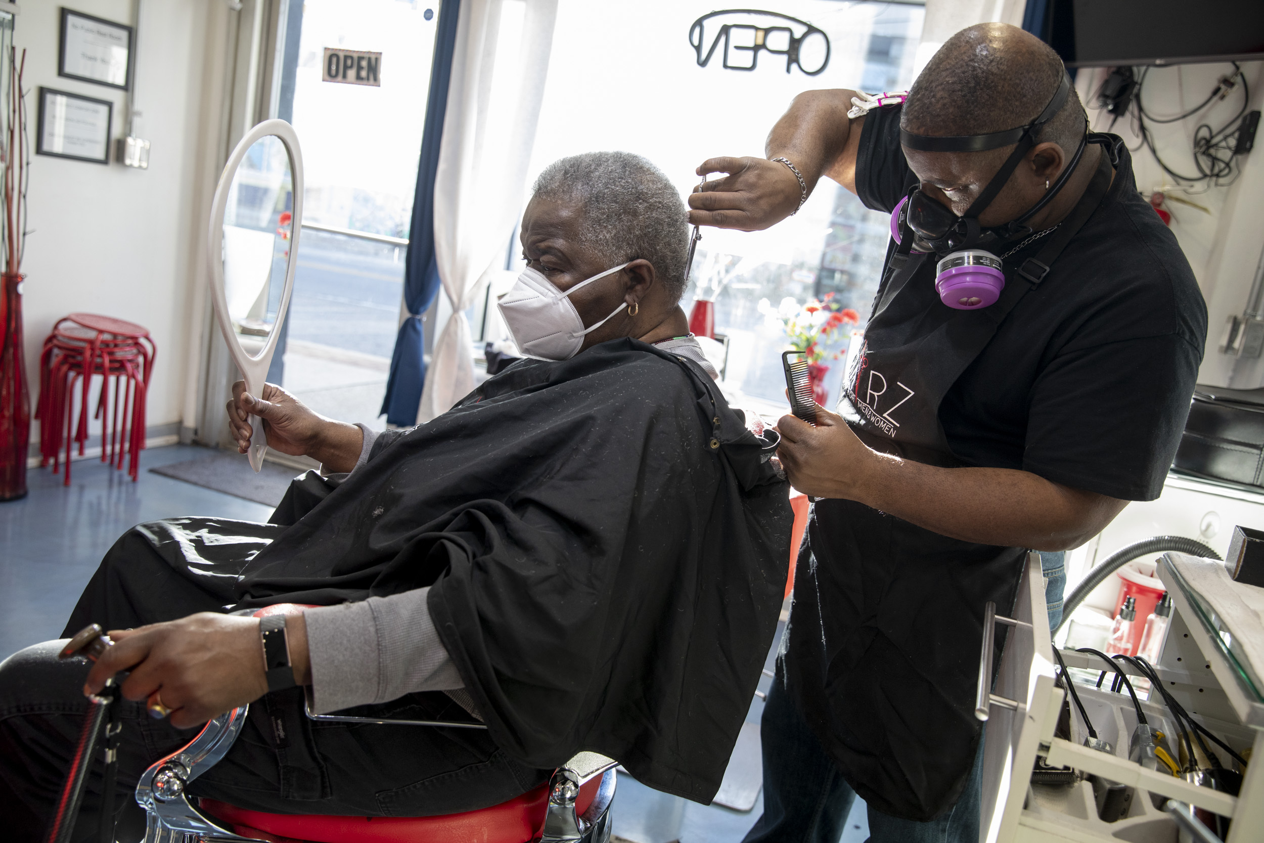 Across the street from Suffragette City, Fred Hall waited for his next appointment to arrive at his salon, Hairz. “A lot of my customers are going through a lot,” he says.