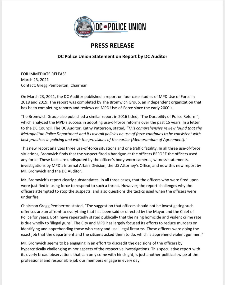 Meanwhile, the D.C. Police Union issued its own statement — opposite of the acting chief and seemingly dismissive of the report and its findings.