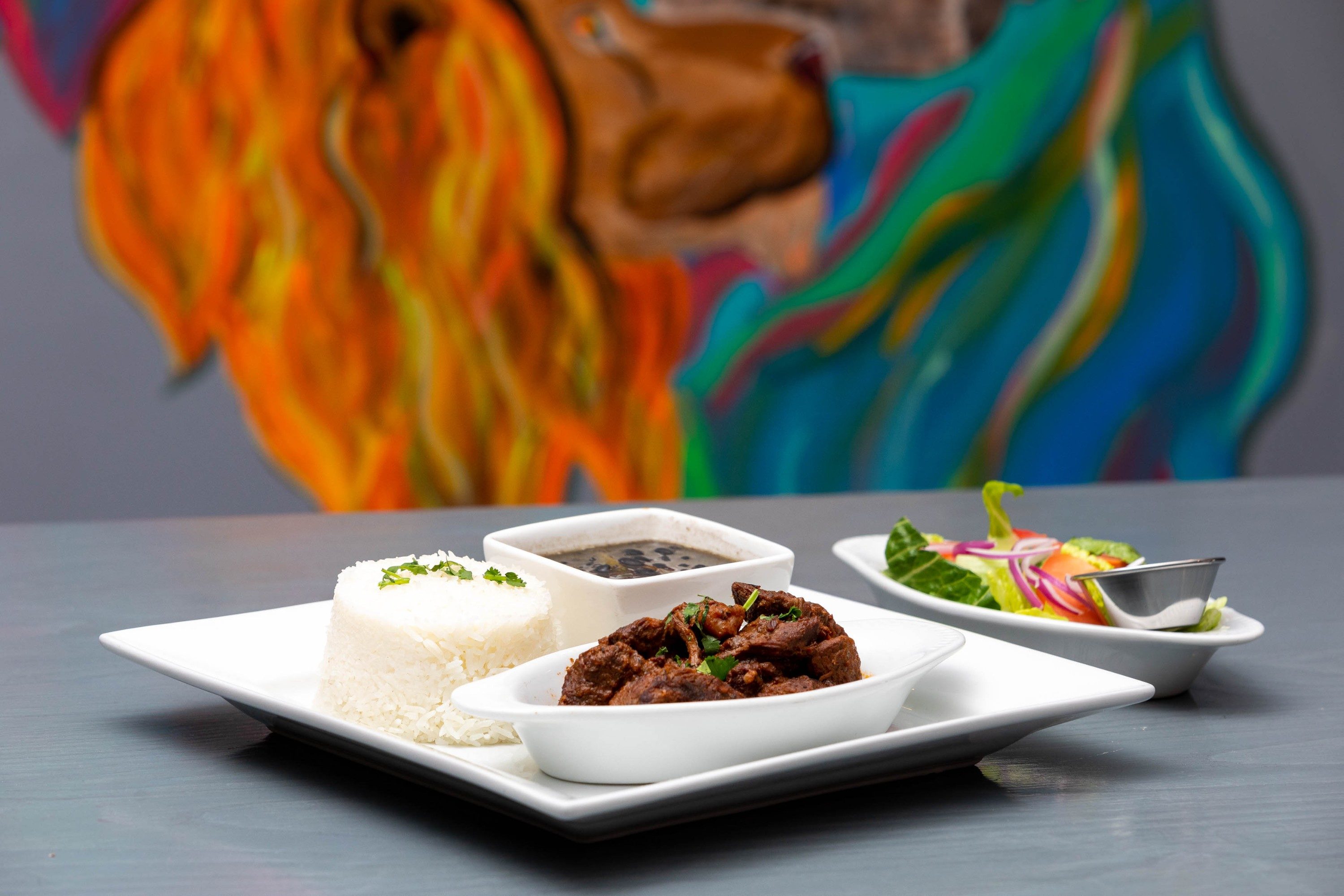 To help diners navigate between cultures, flags denote most of the dishes’ origins on the menu. A top seller is the Cuban ropa vieja, the country’s national dish. Beef is sauteed with paprika and other seasonings before being steamed, shredded, and accentuated with garlic, capers, olives, cayenne, bell, peppers, carrots, and celery. The finished dish is a saucy proposition ribboned with the tatters of tender meat, which goes well with rice and beans and patacones (twice fried smashed plantains, also referred to as tostones).