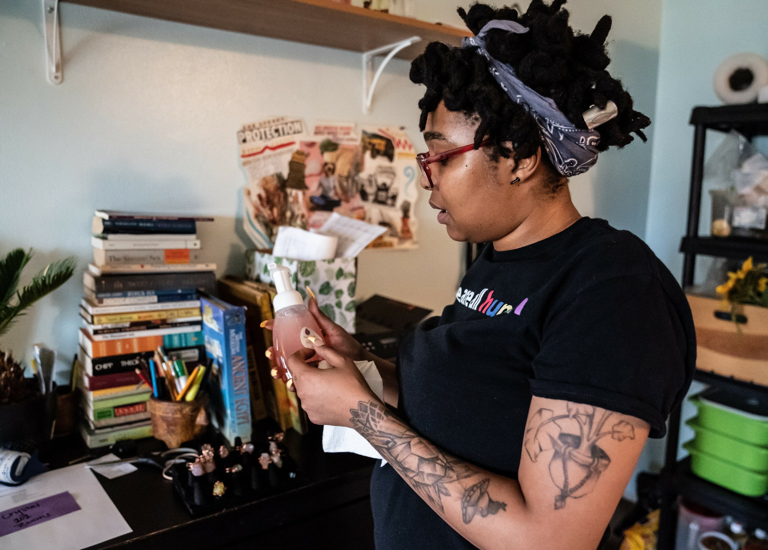 Now, she’s turned her art into a full-fledged business, teaching advanced art classes at the Kuumba Learning Center on MLK Ave in Southeast and doing tarot card readings. Her jewelry, which she calls “wearable art” made of healing crystals, sells out within hours of putting it online. Her Black-centric Plannendar (planner + calendar), which lists birthdays of Black icons and key cosmic dates, is a hit each year — so too are her products like a Pussy Wash made of beet juice, castile soap, and other natural ingredients.