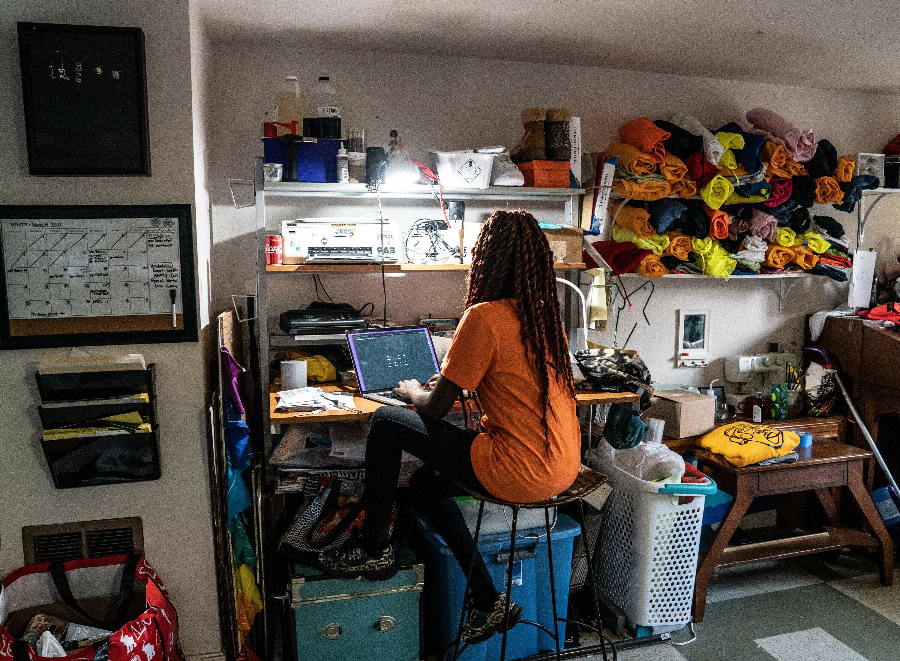 “It’s so hard to work and be on school with him. Sometimes I have to feel like I’m just completely neglecting him,” she says. Other days, she feels like she’s neglecting her business or her own well-being.