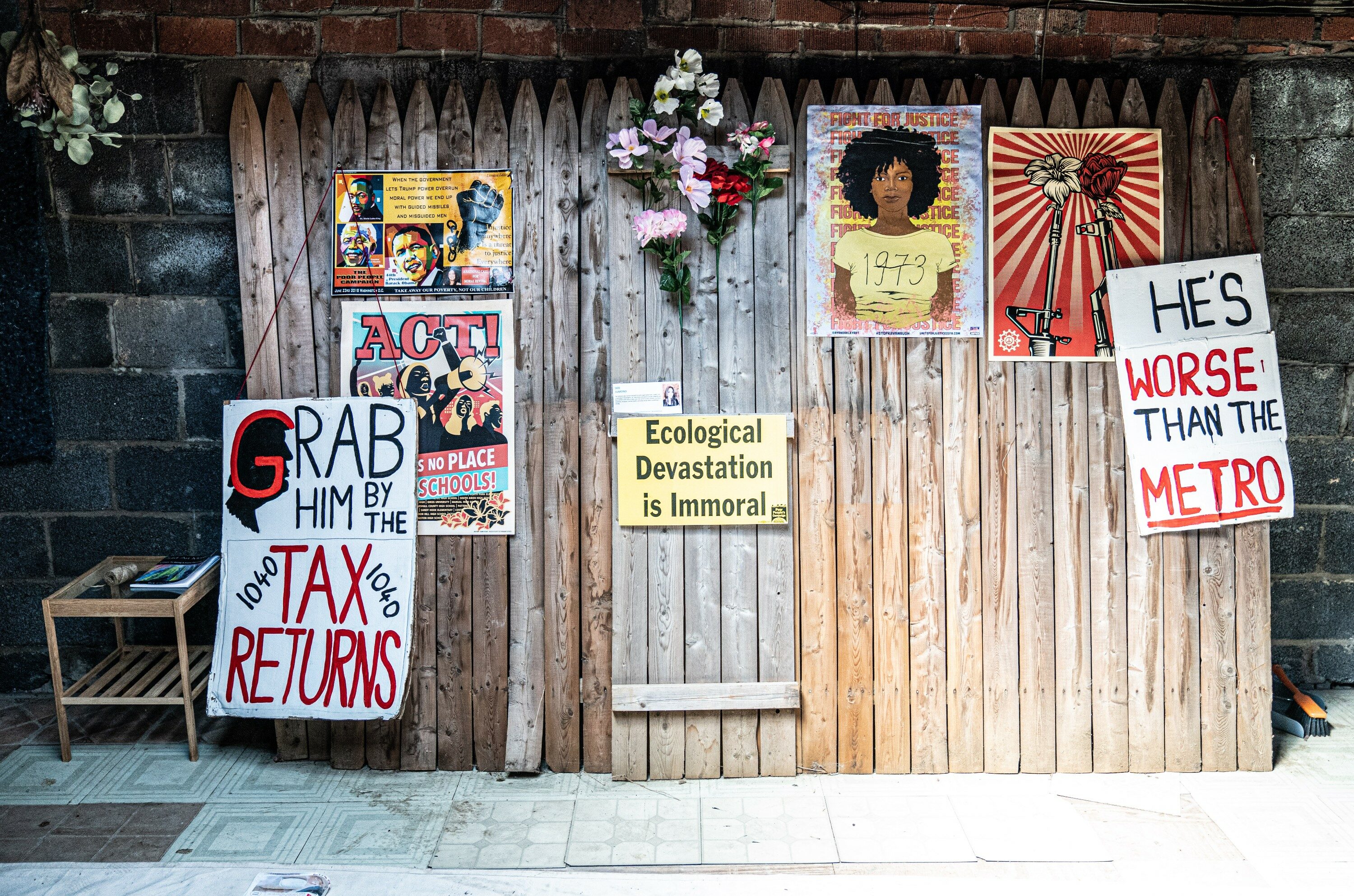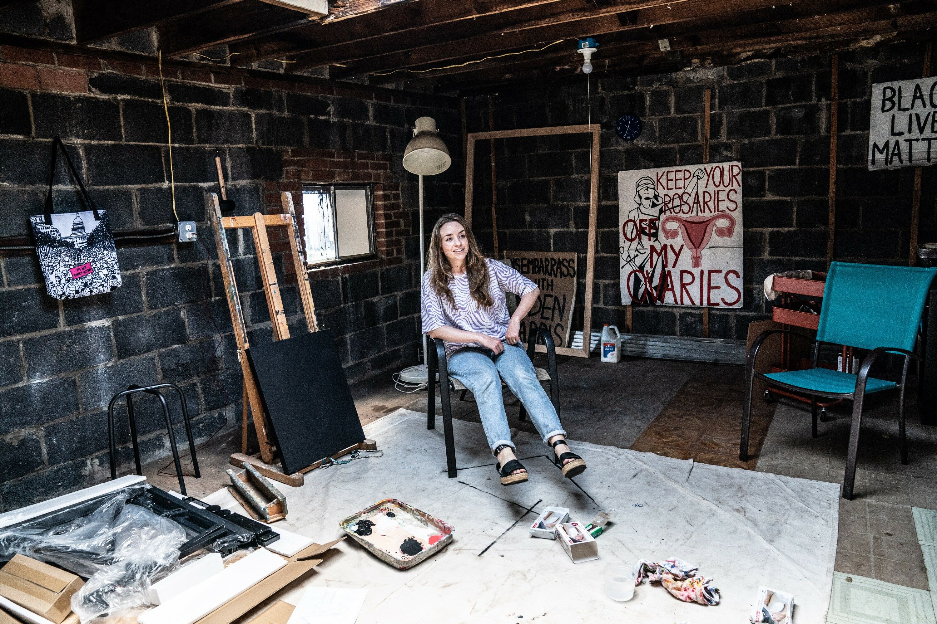 Almond’s work stems from a place of anger — anger at the world and how so many people can experience homelessness and poverty while others live in excess, a dichotomy she witnesses daily in the rapidly gentrifying Trinidad neighborhood in Northeast D.C. She spent about a decade working with NGOs, traveling the world to promote sexual and reproductive health. Then President Donald Trump was elected. Then she had a daughter, Pym. Then she attended the Women’s March in 2017, where she gained all kinds of inspiration for protest art. She quit her full-time job in public health to pick up the kind of pens and brushes she used throughout her youth, when she bathed in the creativity of her own mother, an art teacher.