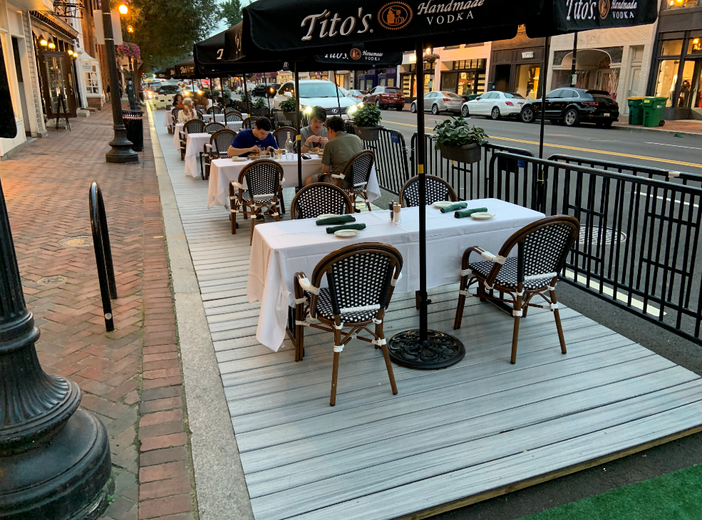 Restaurants can choose to have tables closer to the building and leave the decks open for walking, or they can put tables on the decks. That’s when concrete barriers will be installed around that entire section, in accordance with DDOT safety standards.