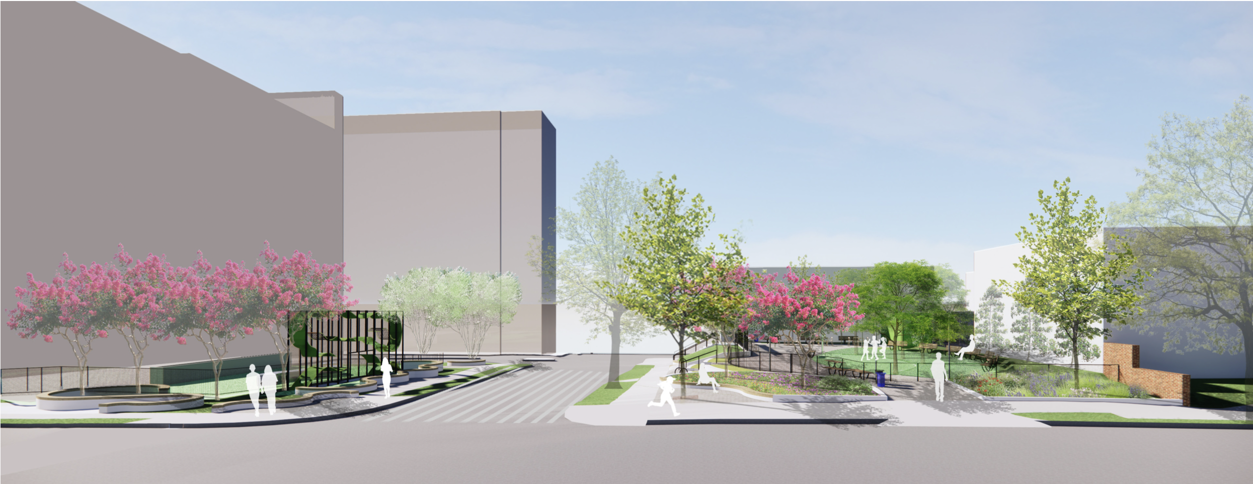 “When parks are built — and the young trees are there — they look small, and it may look like the park itself may dwarf the trees,” said Jasper. “But over time, these trees will grow and thrive” bringing a shade canopy and a sense of green to the space.