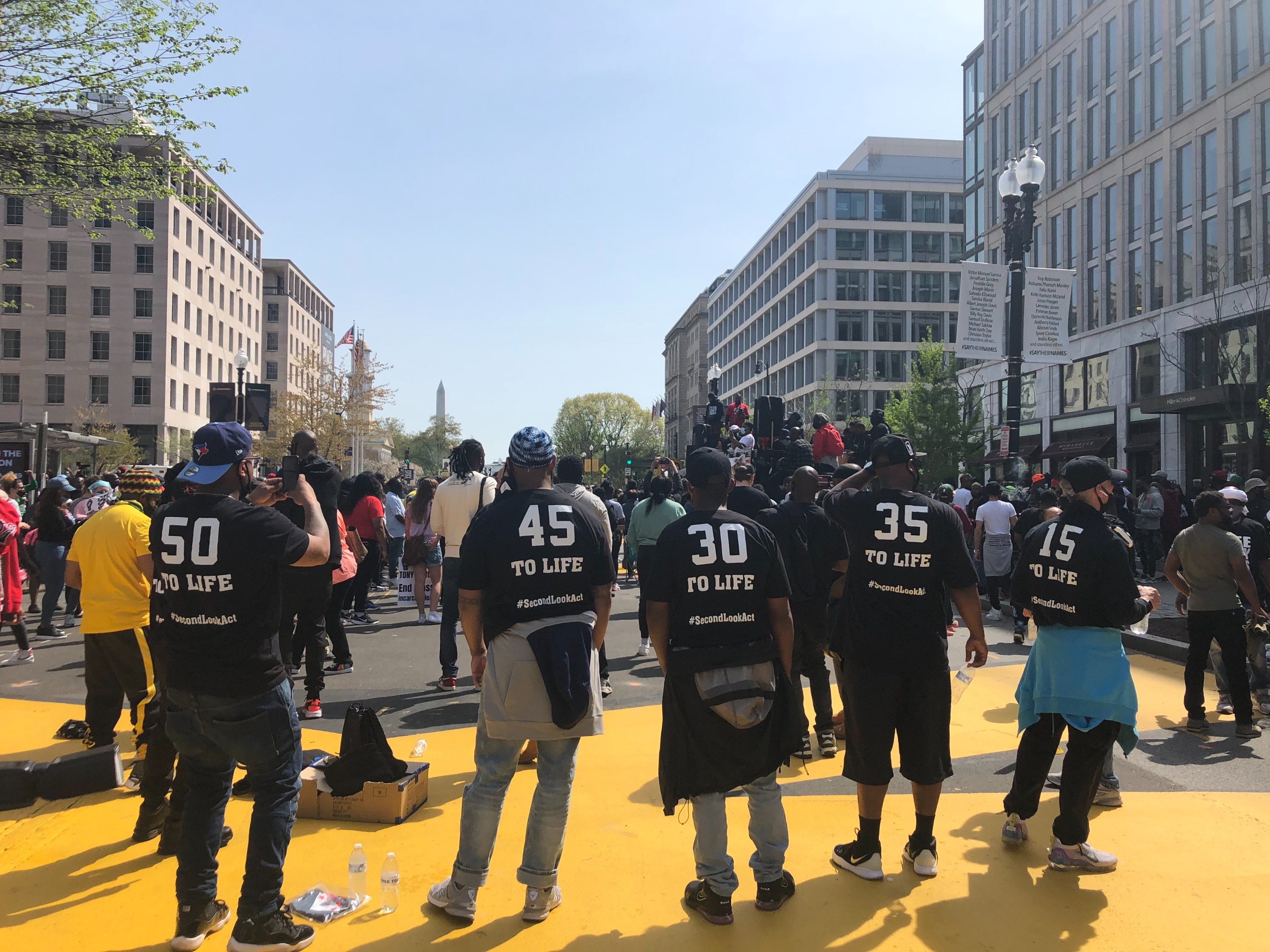Battle and his fellow IRAA recipients wore matching t-shirts at the rally with their original sentences on the back to show their support for resentencing and clemency efforts.