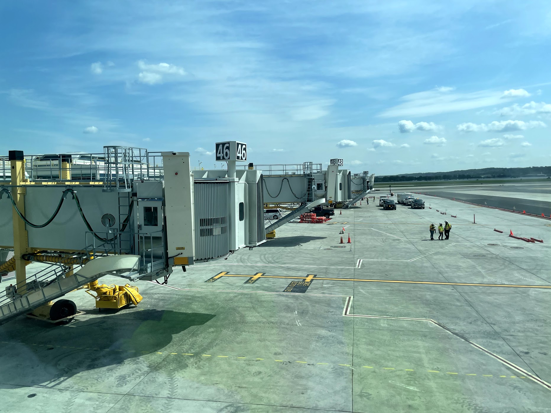 - Unobstructed views of the Washington, Lincoln and Jefferson memorials, the U.S. Capitol, the National Cathedral, and the new Frederick Douglass Bridge. Architect Louis Lee of the Metropolitan Washington Airports Authority says they specifically chose tall glass at certain Gates 47 and 49 to highlight the new views. “We designed to take advantage of that,” Lee said.