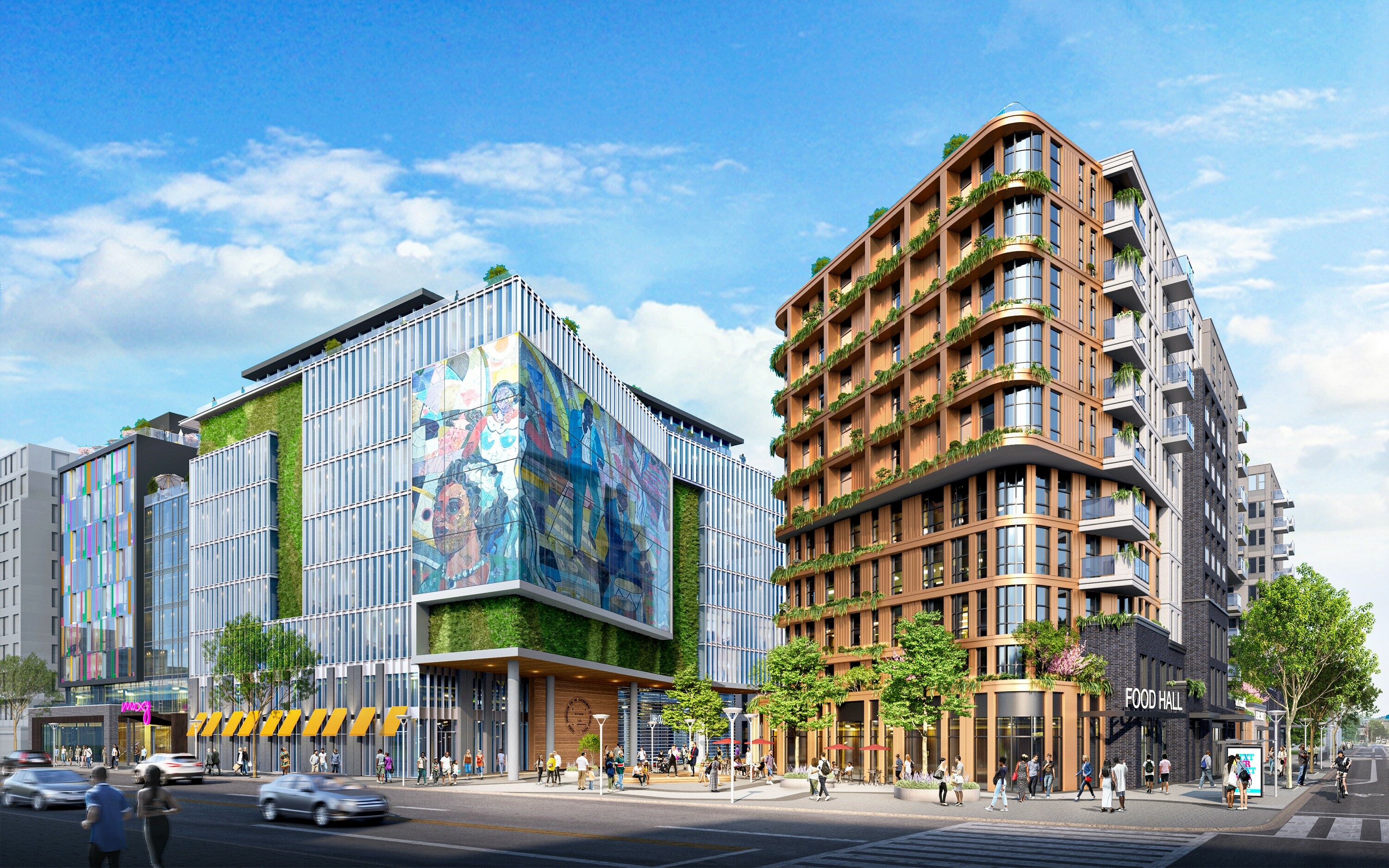 Team Two (Dantes Partners, Menkiti Group, and Horning Brothers) plans to partner with local and national organizations, including DC Central Kitchen, The Collective Food Hall, and Songbyrd, as well as community organizations such as the MusicianShip and St. Augustine’s Catholic Church.