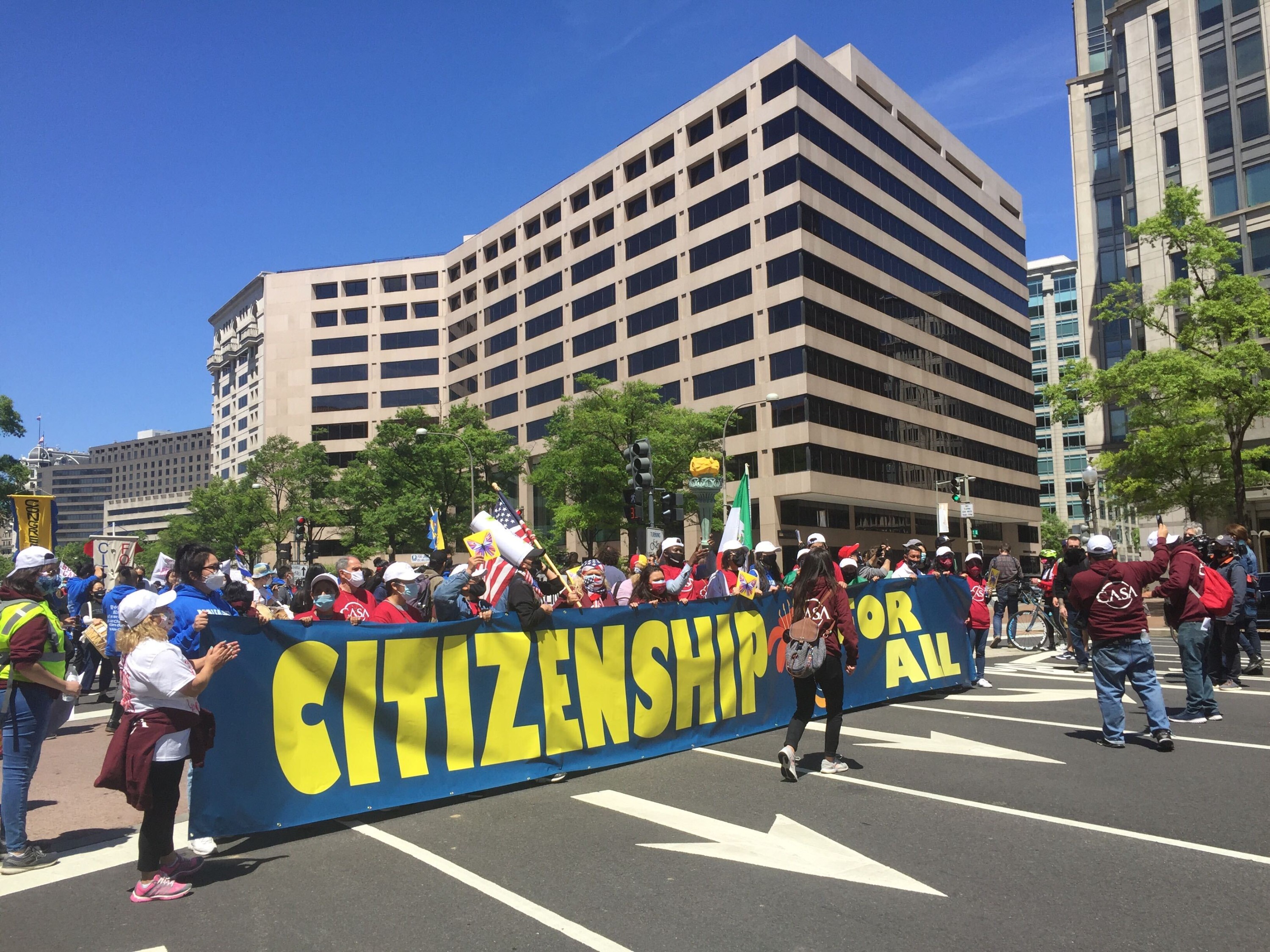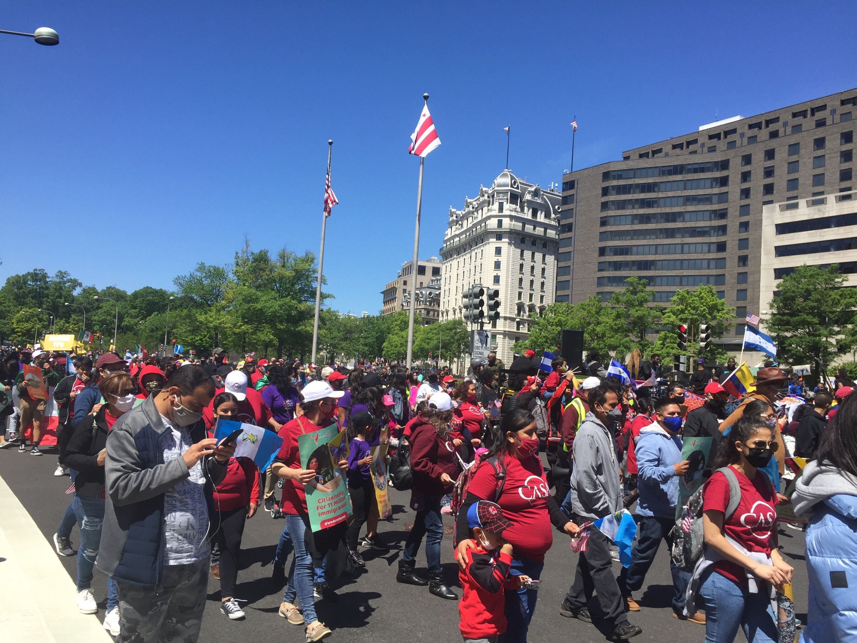 Aguilar spoke to WAMU/DCist at a march and rally for immigrant rights on the National Mall on Saturday. The event was hosted by a broad coalition of local and national advocacy groups, faith organizations, unions and more. They hoped to use International Workers’ Day — which falls every year on May 1 — to call attention to the essential worker status of many immigrants and demand that the federal government create a pathway to citizenship for all 11 million undocumented people in the U.S.