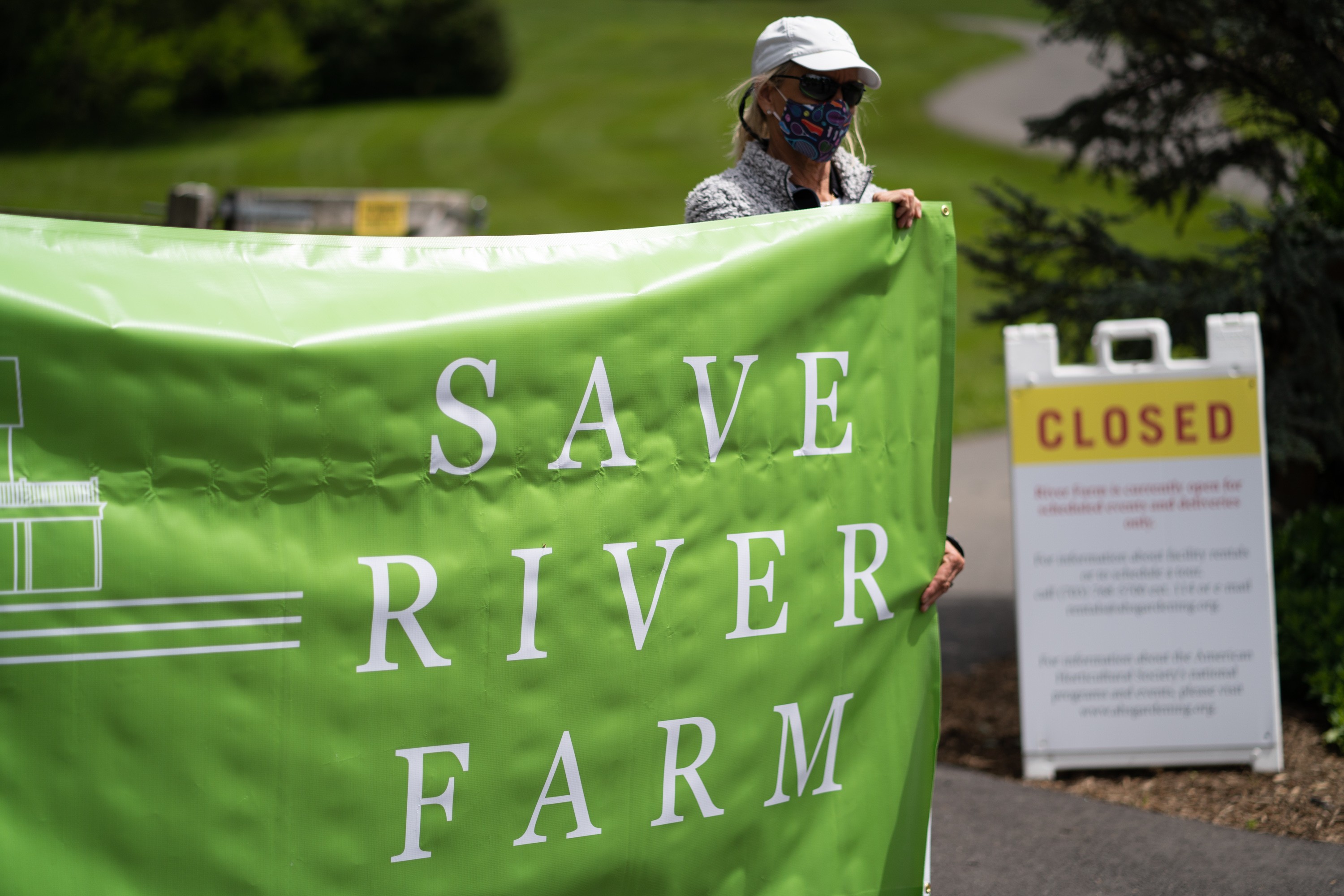 As Herring and others spoke to reporters, neighbors held up signs reading “Save River Farm.” Among them was Judy Heiser, who lives nearby and teaches painting classes at River Farm.