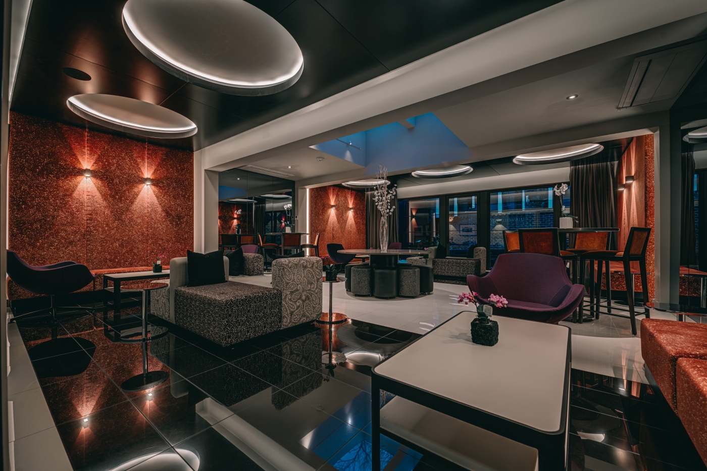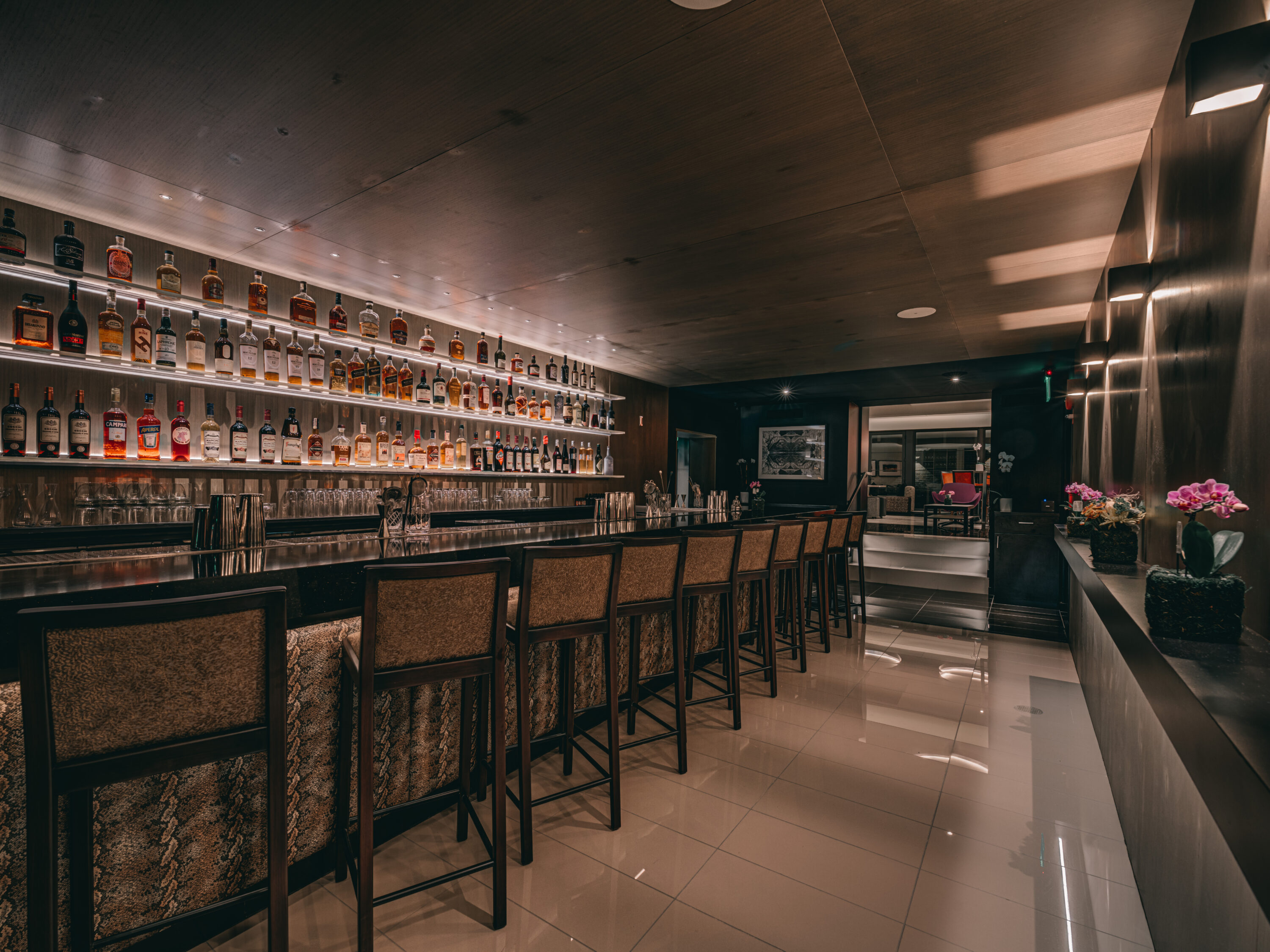 A wraparound bar serves more than a dozen champagne varieties ranging from $100-$400 and Prohibition-era cocktails by Giovannini. Some mix rum and fruit flavors like passionfruit or pineapple, and a gin infused with kumquats and lemongrass amps up the usual tonic. The bar’s namesake drink combines elderflower, rose-infused vodka, and, of course, bubbles.
