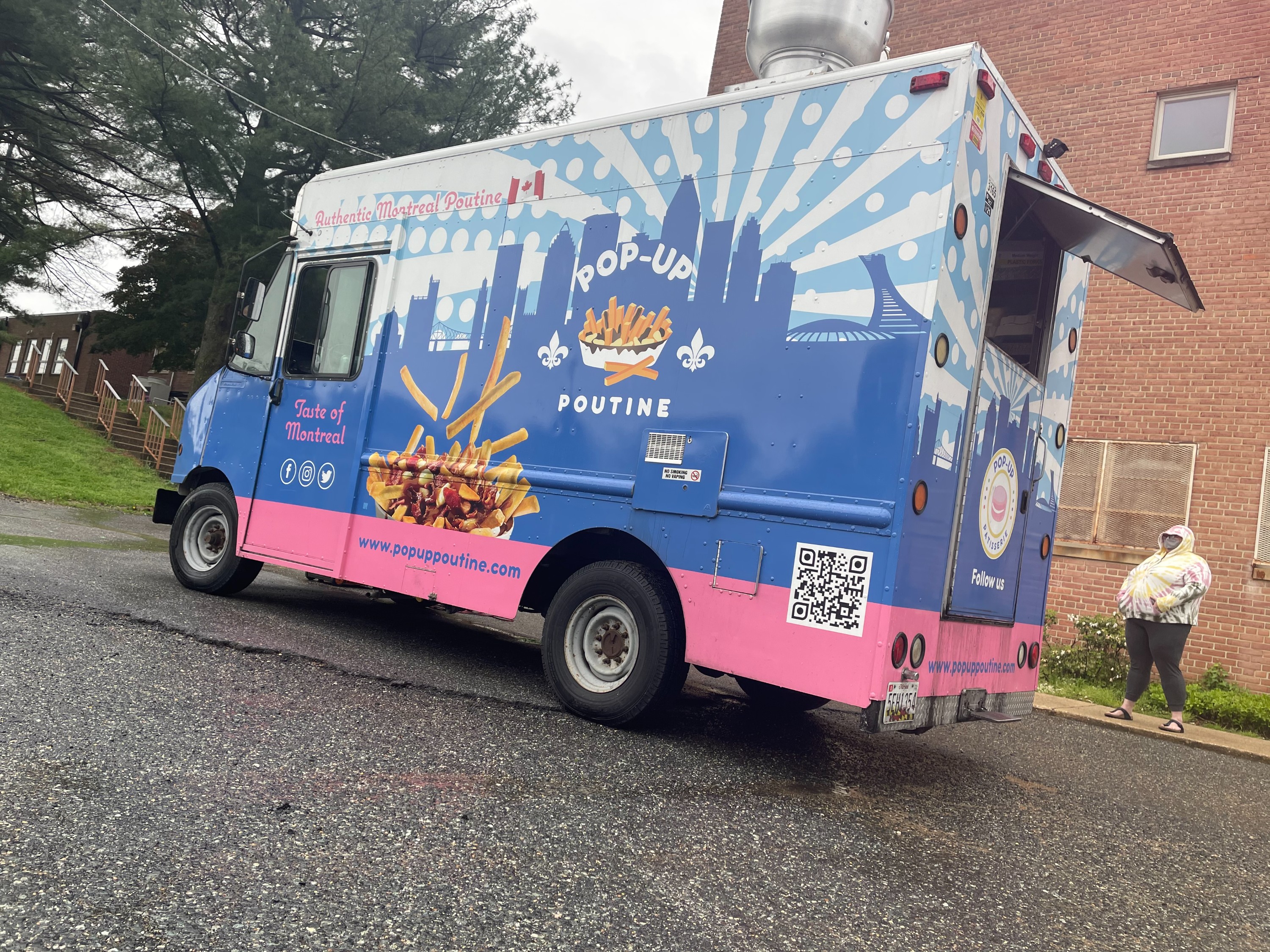 Pop-Up Poutine joined the Woodmoor school drop earlier this month, where the rain may have put an additional damper on sales. Around the back of the parking lot, a small line formed outside the pink, blue, and white truck. For Elizabeth Kanick, who works on Capitol Hill and has three children, a short wait in the rain was far less cumbersome than a schlep into the city.