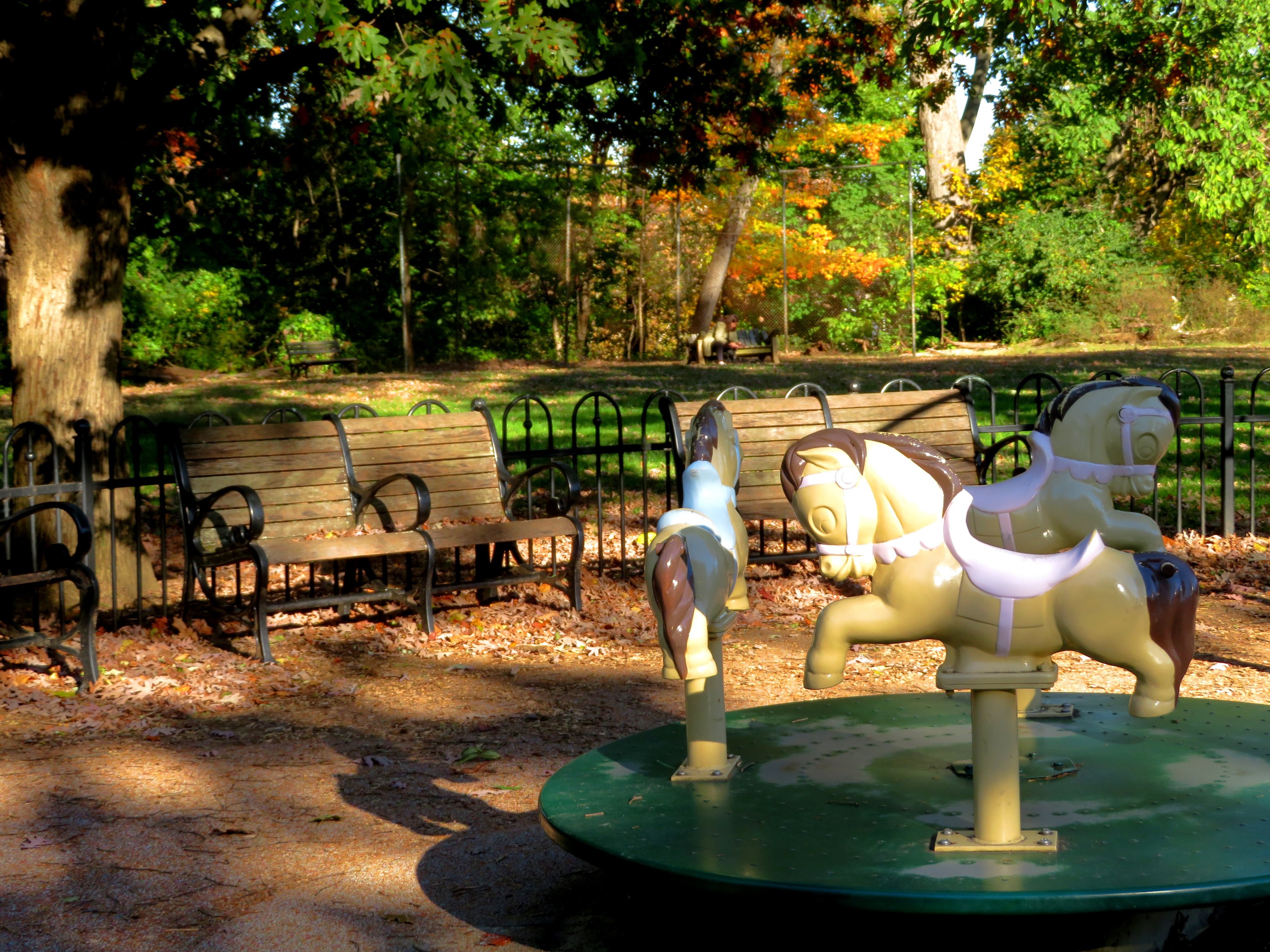 A woman at a D.C. park is calling out to two kids on the playground: