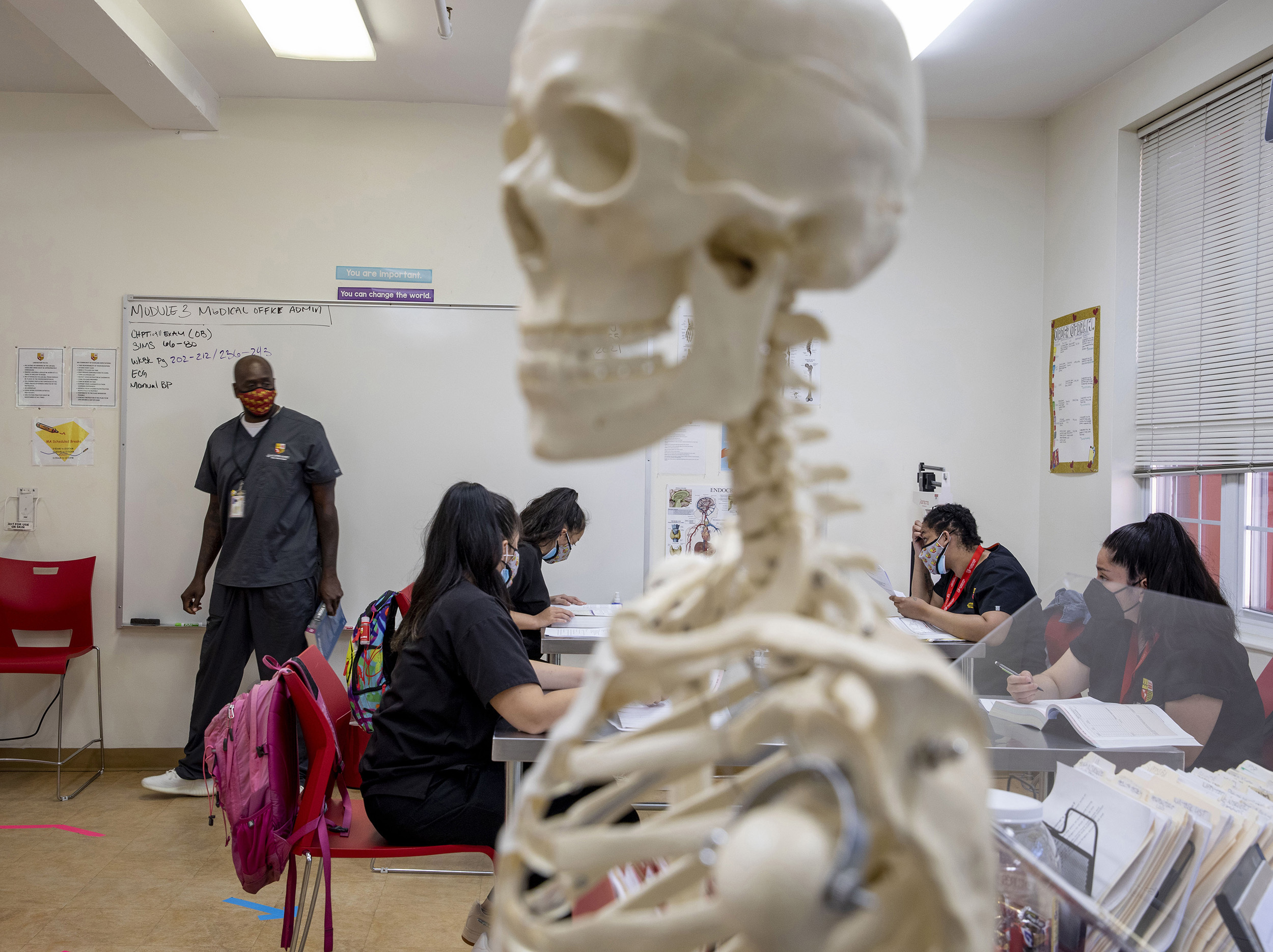 Brian Sevier, who directs the school’s medical assistant program, said the students had completed enough coursework to practice on their own when learning moved online. He gave them blood pressure kits and kept in touch through a class WhatsApp group.