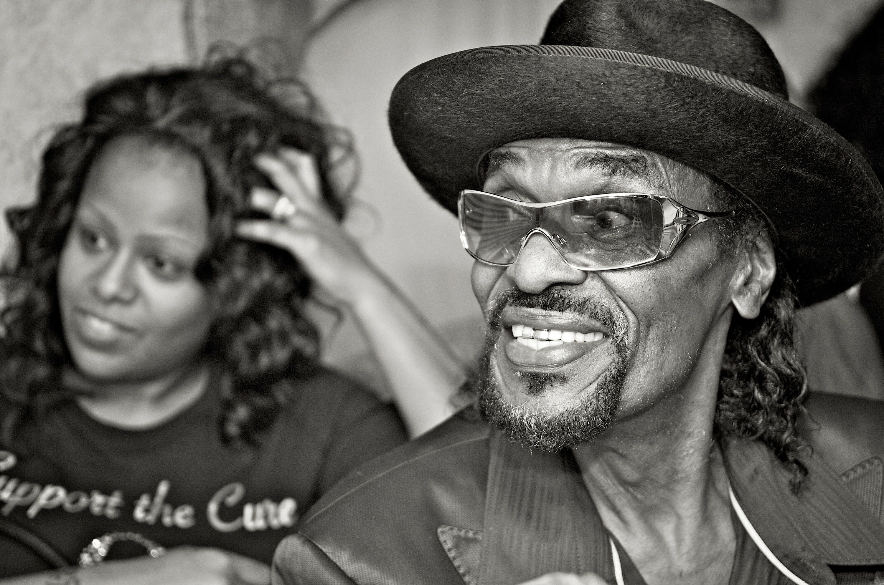 Py passed the cool test and was welcomed into the Chuck Brown family. That’s how he got close enough to capture Brown relaxing in a trailer before a Labor Day performance on the National Mall; or shots of Sweet Cherie of the women-led band Be’la Dona rocking out on tour; or photos of go-go drummers using cowbells, buckets, and tambourines.