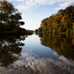 “Seeking refuge” like ospreys and kingfishers. Examining how “the hues of the earth not sedimented / in your banks, but always remade, / painting fresh reflections.” Forecasting that “In fall, the leaves / will cover the ghosts / as the last rower skims past.”