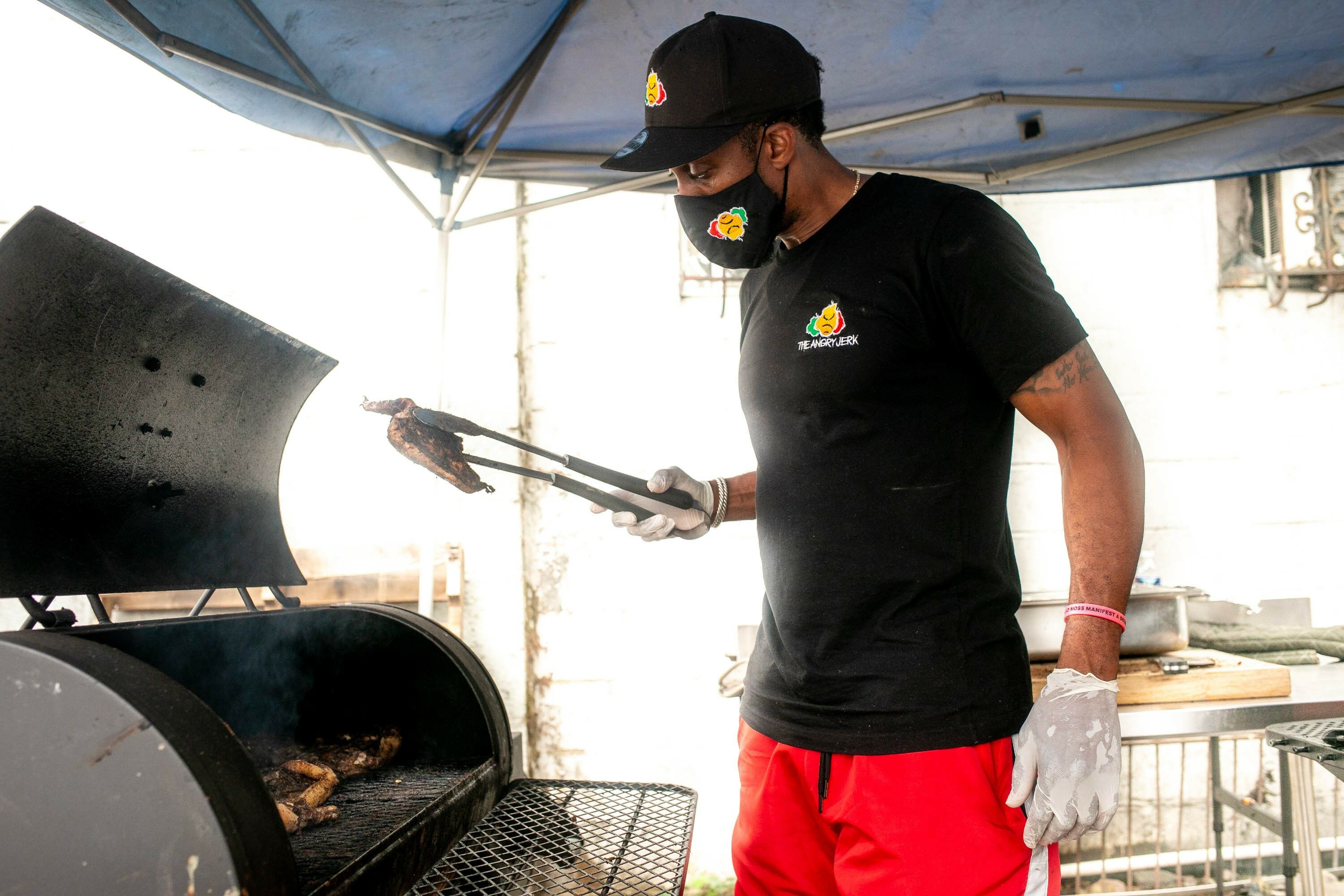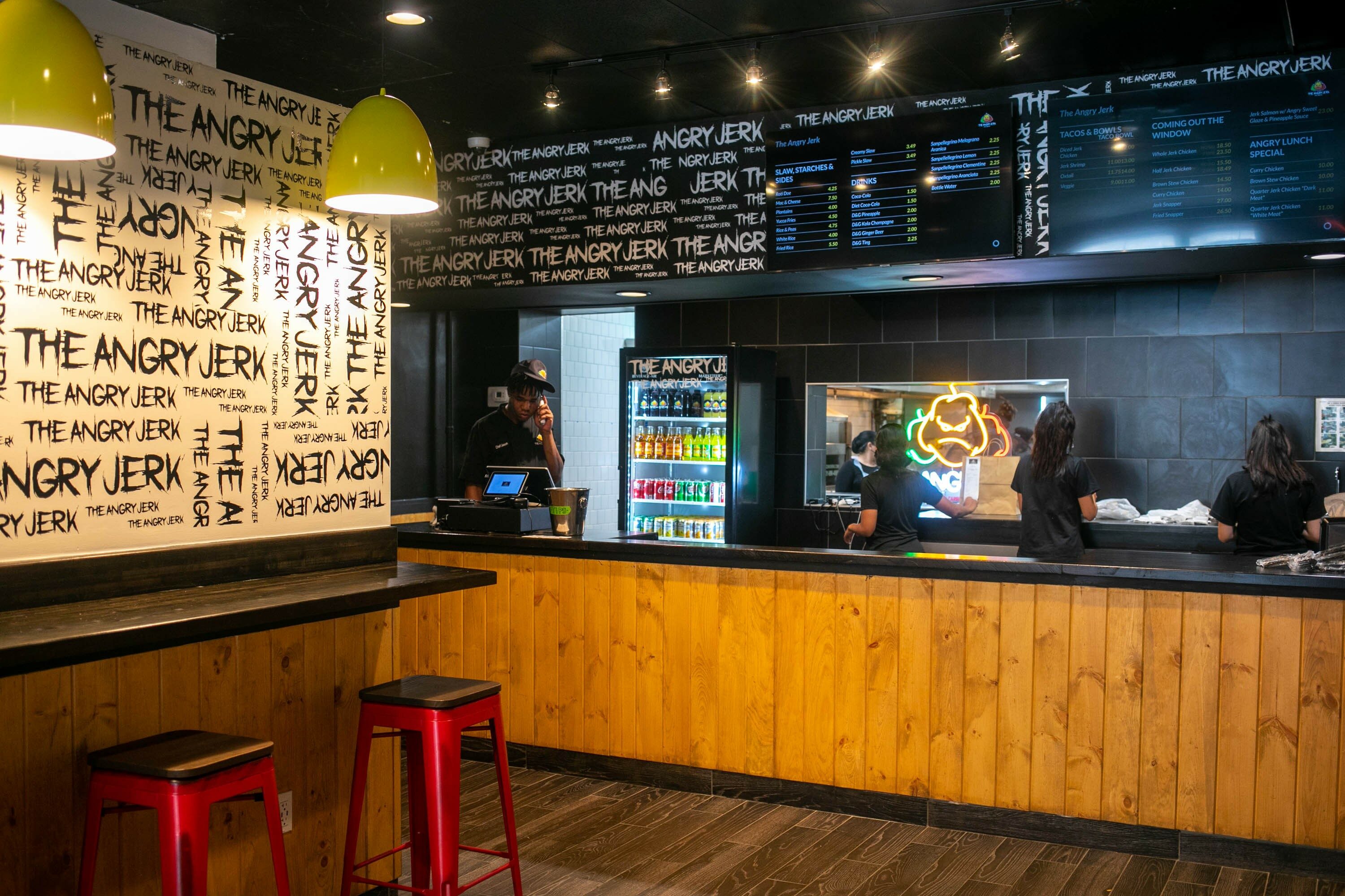 You might do a double take when you see the name of Silver Spring’s latest restaurant, the Angry Jerk. Its logo is equally head turning: a livid-looking scotch bonnet pepper, the backbone of Caribbean cuisine. “What can I say, it’s a catchy name,” says Jason Miskiri, the Guyanese-born, Maryland-raised owner-chef who opened the eatery on the downtown drag of Georgia Avenue in late July. “People seem to gravitate towards it.”