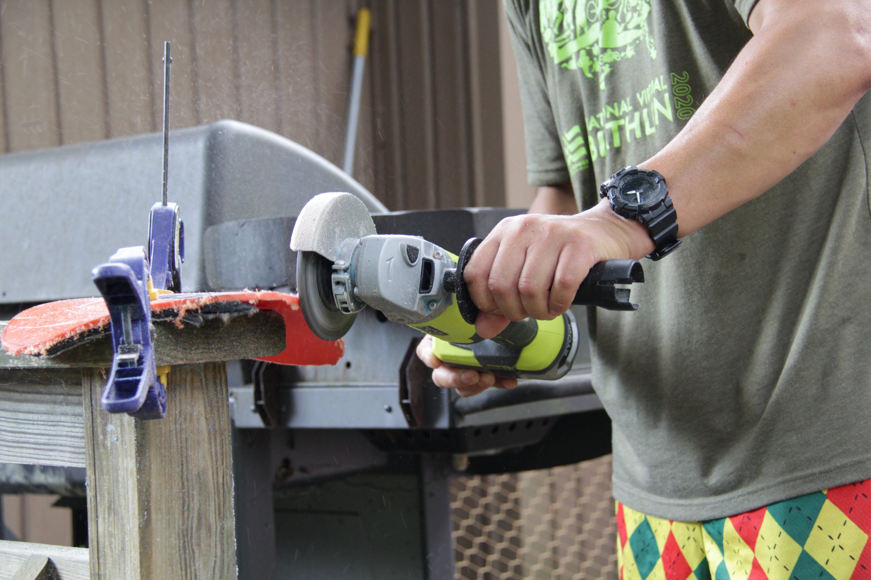 Su didn’t invent the hand paddle; he just found a free manual online and started carving up kayaks. Each boat would take about two hours to convert into hand paddles, if Su worked on one boat at a time. Instead, he prefers to take several boats through one part of the process at a time, making quick work of each task, smoothly slicing through the grungy, nubbly plastic.