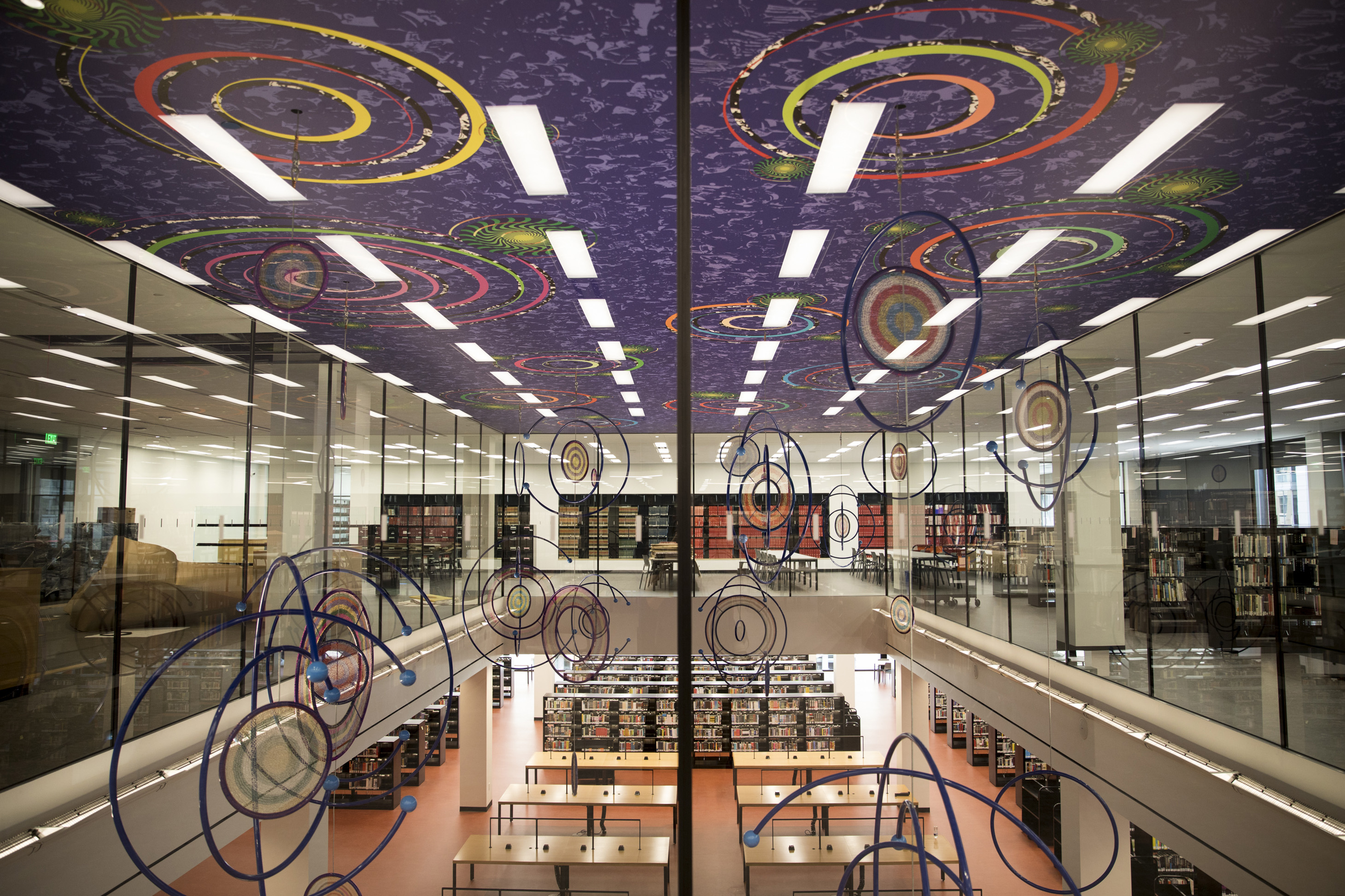 The “D.C. Represented” portion of the floor feeds into a room where visitors and researchers can browse through hundreds of old photographs, newspapers, and maps of the District. (Gloves are even required to hold some documents.) The collection overlooks a two-story, open-air reading room, one of the large architectural accomplishments of the renovation.