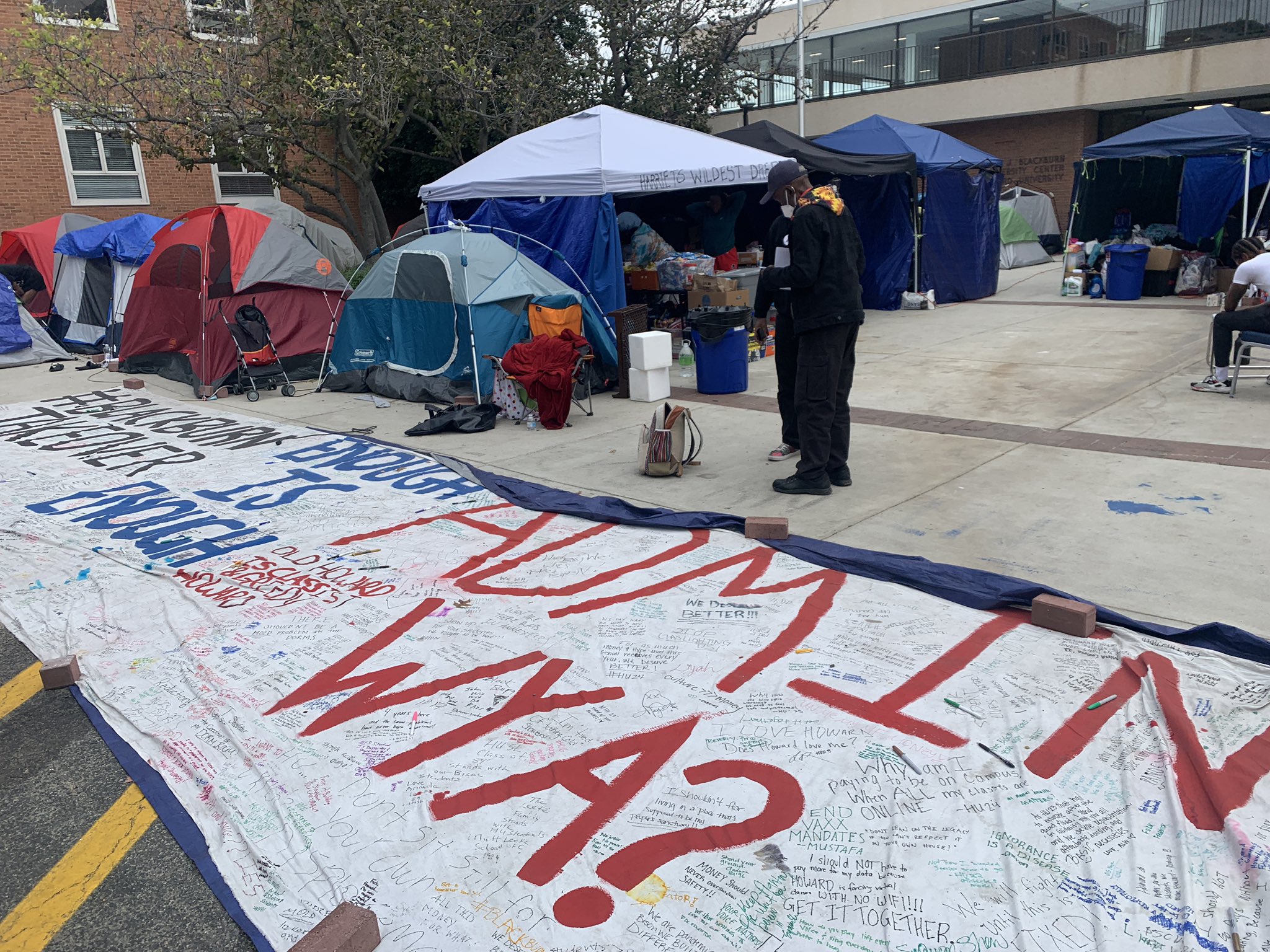 As Howard University’s first in-person homecoming festivities in two years continued on Saturday, about 150 students camped out in front of a campus building, with some camped in the building’s lobby, continuing a sit-in that started nearly two weeks ago. Students, local activist groups, and HBCU alumni from around the country have joined in solidarity for the “Blackburn Takeover,” referencing the student center where the tent community is located.