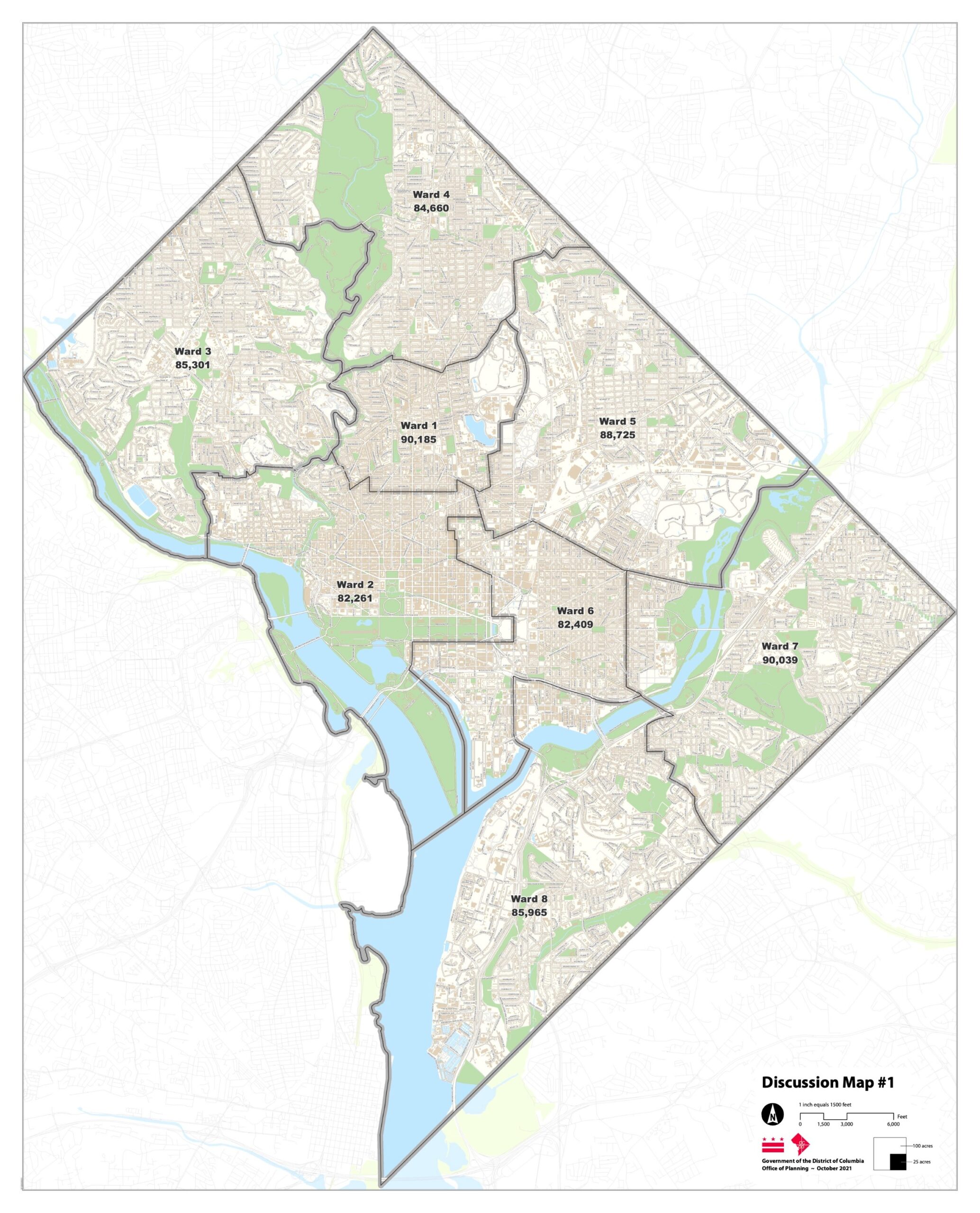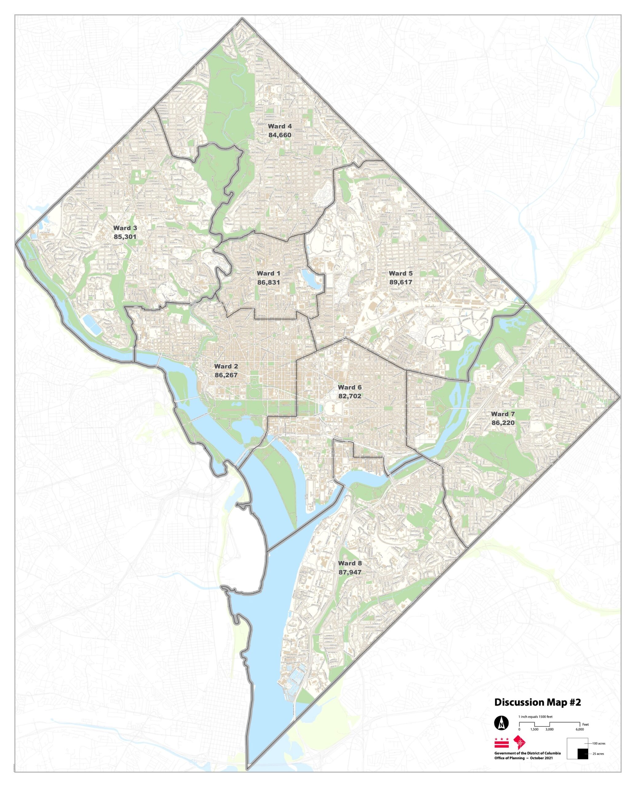 Over the past 10 years, D.C.’s population has grown the fastest in Ward 6, driven by new development in areas like NoMa, Navy Yard, and the Wharf. That means the ward will likely have to shrink in geographic size in order to abide by D.C. law, which says that the city’s eight wards need to be relatively equal in terms of population. The law permits a variance of 5% above or below the average ward population, and that means Ward 6 would have to give up at least 17,699 residents in order to comply. According to census data — which comes with some caveats, like the fact that Black and Latinx residents were likely undercounted — Wards 7 and 8 are also outside of the permitted variance. Ward 7 needs to gain at least 5,638 residents, while Ward 8 needs to gain at least 3,370 residents.