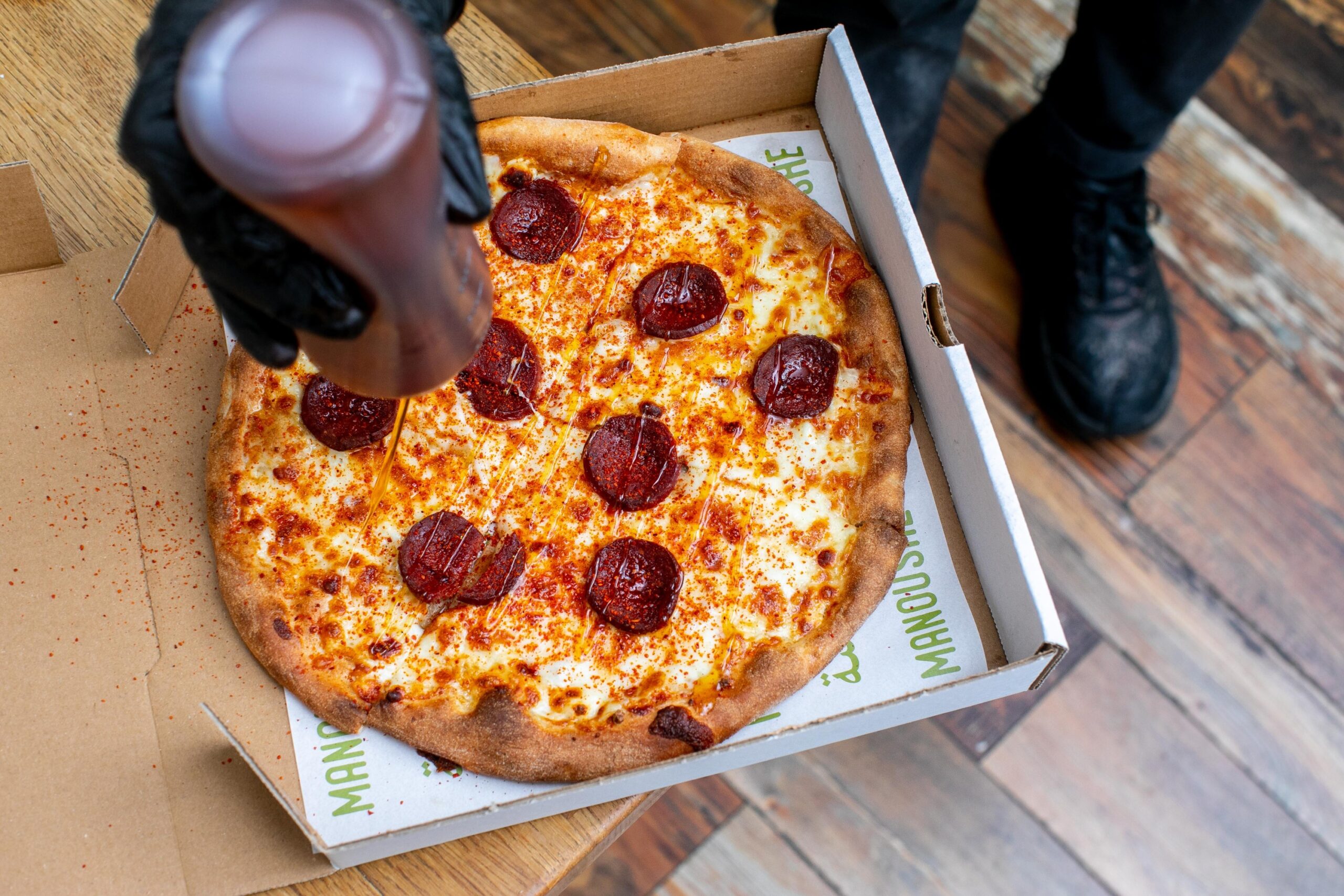 The Hot Halaby Honey includes the same three cheeses, as well as sujuk, an Armenian beef sausage, Aleppo pepper, and honey. Another meaty option is the Lahm Bi Ajeen topped with spiced ground beef, parsley, tomatoes, pickled sumac onions, and a few squeezes of fresh lemon juice.