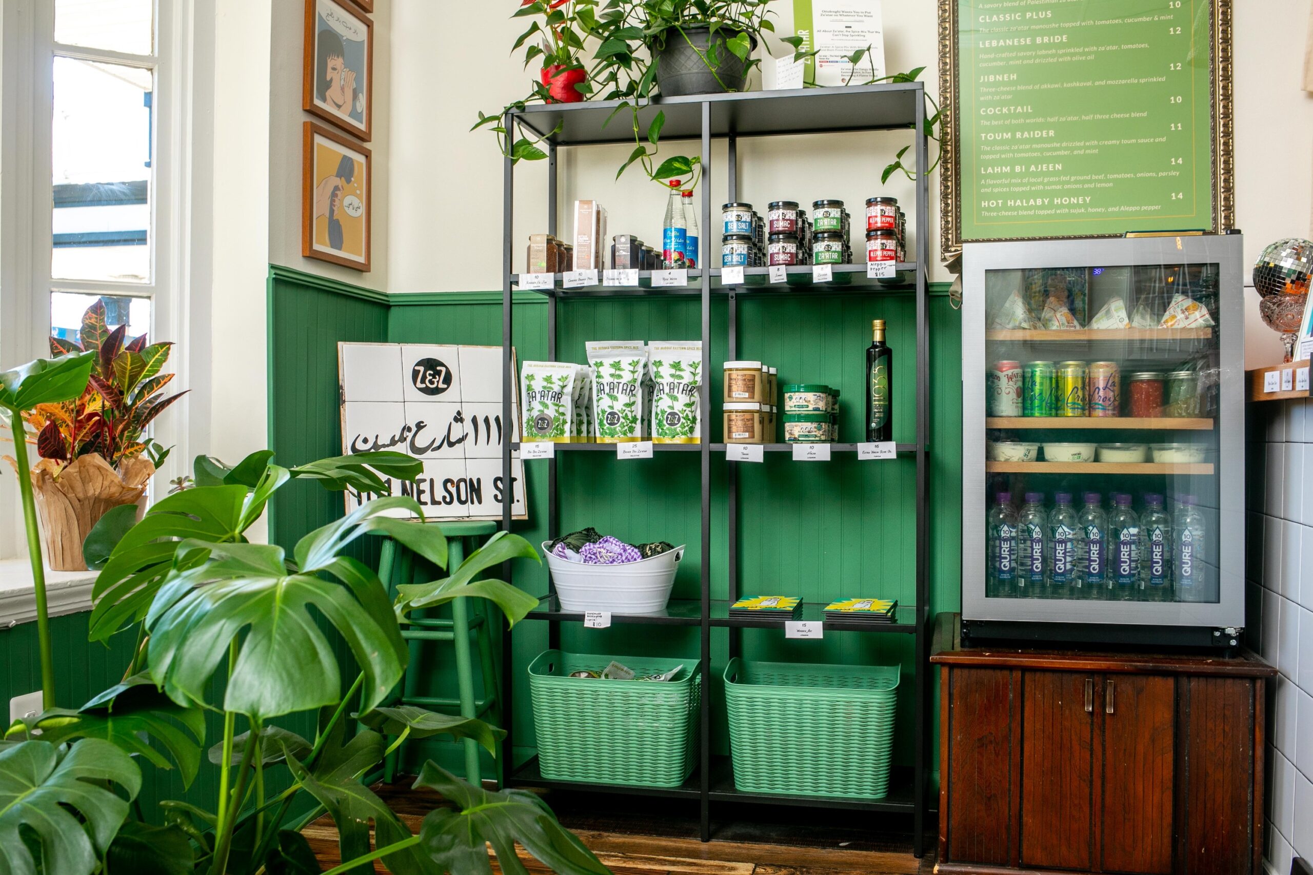 The small 630-square-foot restaurant is currently only open for takeout. Though they may eventually add indoor seating, there are tables out on the patio. A market area in the front offers Z&Z’s packaged za’atar, sumac, Dead Sea salt, and Aleppo pepper, as well as freshly made labneh and toum.