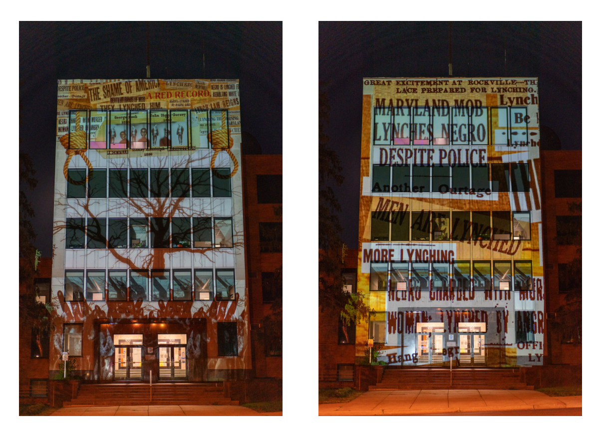 Friday and Saturday night only, six local artists will display projections on buildings across two blocks in downtown Rockville, Md., each piece confronting the history of lynching in Montgomery County and the role Rockville residents had in that violence.