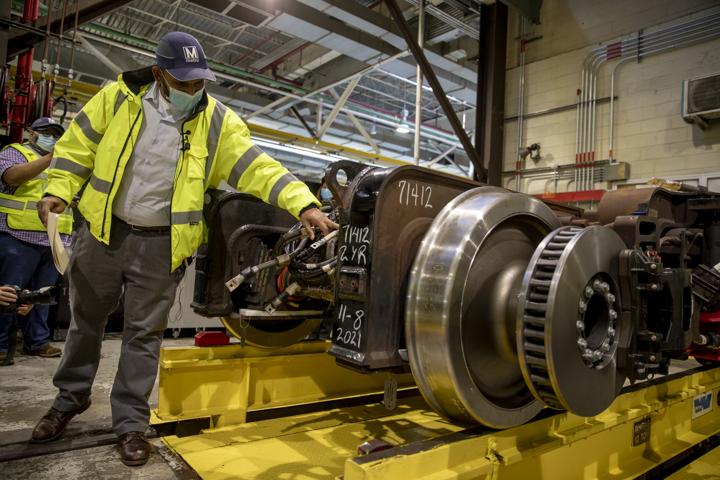 Metro gave reporters a demonstration of how it inspects the wheels on its trains. The event Tuesday at Metro’s Greenbelt Yard showed the tools and processes technicians go through to make sure the wheels are in compliance.