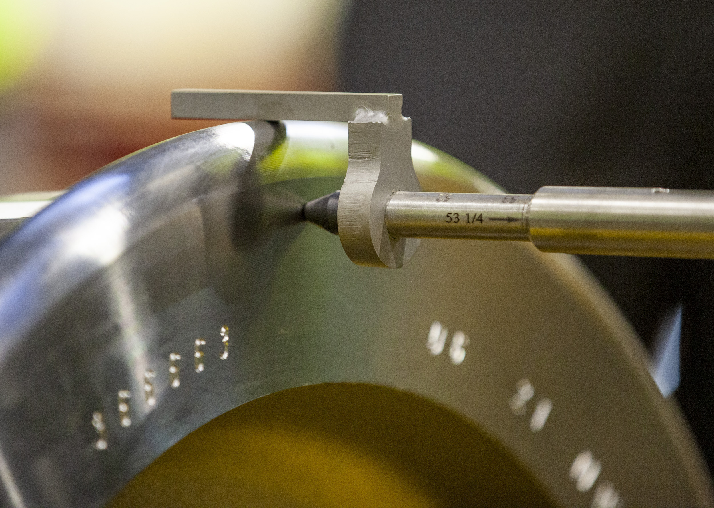 At Greenbelt, they showed a pit where technicians can get below the trains to measure the distance between wheels. They use a metal rod gauge that measures the distance between the back of the wheels, which should be 53 and 5/16 inches. The wheels are measured in three different spots and if a wheelset is off by as little as 1/16 of an inch, which is pretty much imperceptible to the eye, it’s removed from service and replaced, says Deputy Chief Mechanical Officer Shushil Ramnaress. Axles can be refurbished, re-certified, and reused.