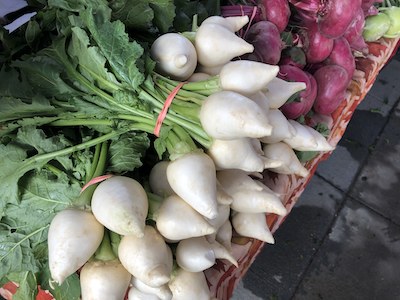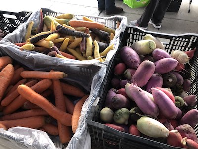 Meanwhile, at the farmers market, Omar Flores enthusiastically greeted each of his customers, who lined up to buy radishes and carrots of different sizes and colors. In exchange, he offered them five apples or lettuce as a gift. He also wished them a happy winter — though it came a little early—even a Merry Christmas.