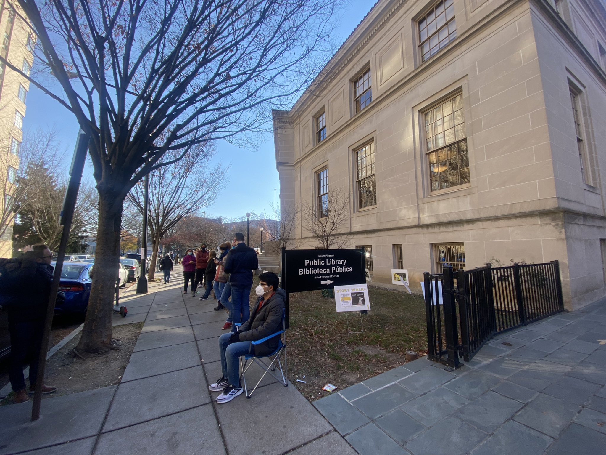 Solid line already at Mt Pleasant Library, half hour before open. If you're planning to pick up rapid tests today at the libraries, you're going to want to get in queue. #popville @PoPville pic.twitter.com/hMVGAHDiK6