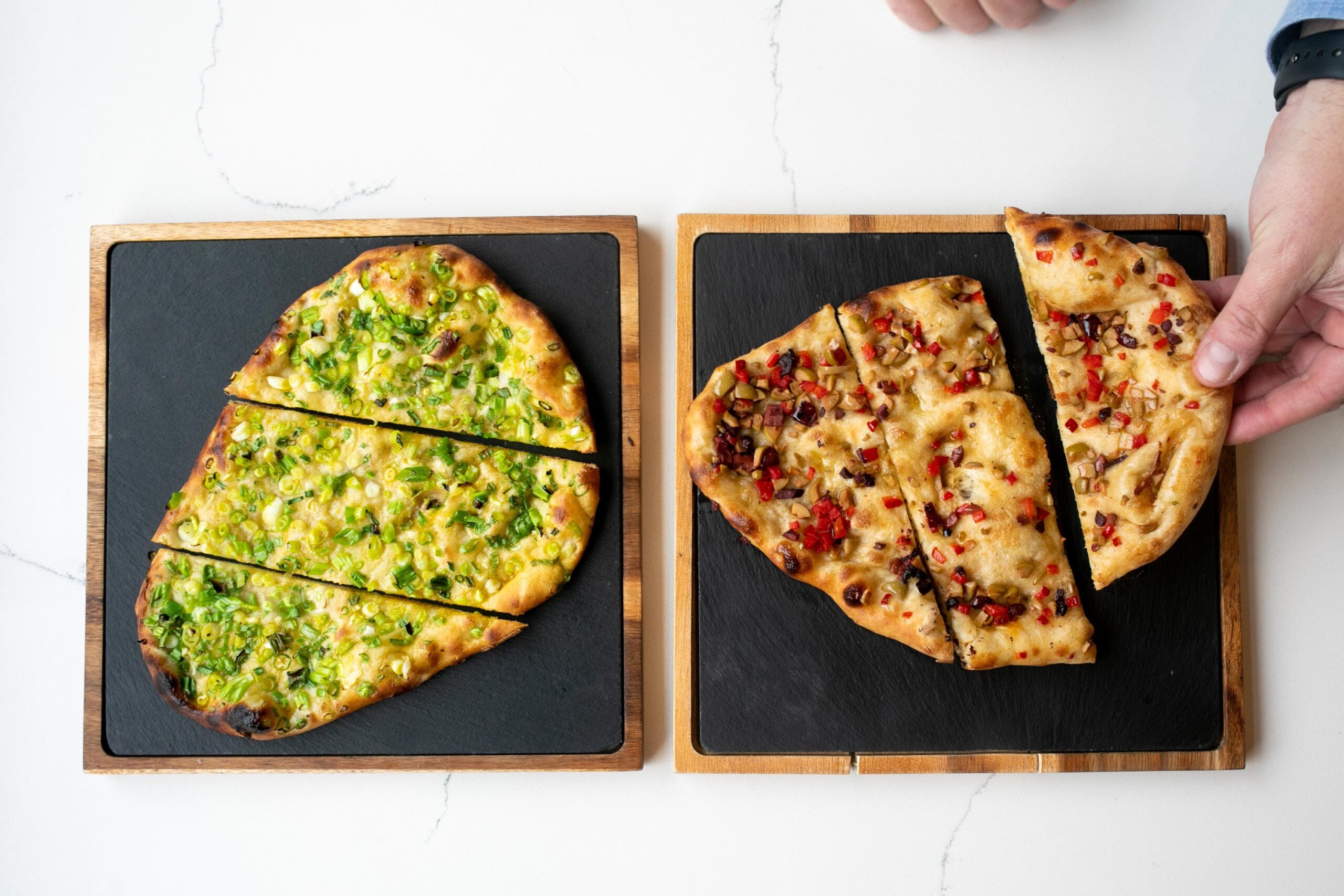 To complement the mains, there are classic bread options, like garlic naan and whole wheat roti. However, Kumar allowed himself to have a little fun. One naan is topped with olives, while garden naan features the unconventional combination of spring onions, cilantro, and mustard oil. Side dishes stay traditional – palak paneer, mint cucumber raita, and fenugreek forward dahl made with black urad lentils, along with plenty of cream and butter.