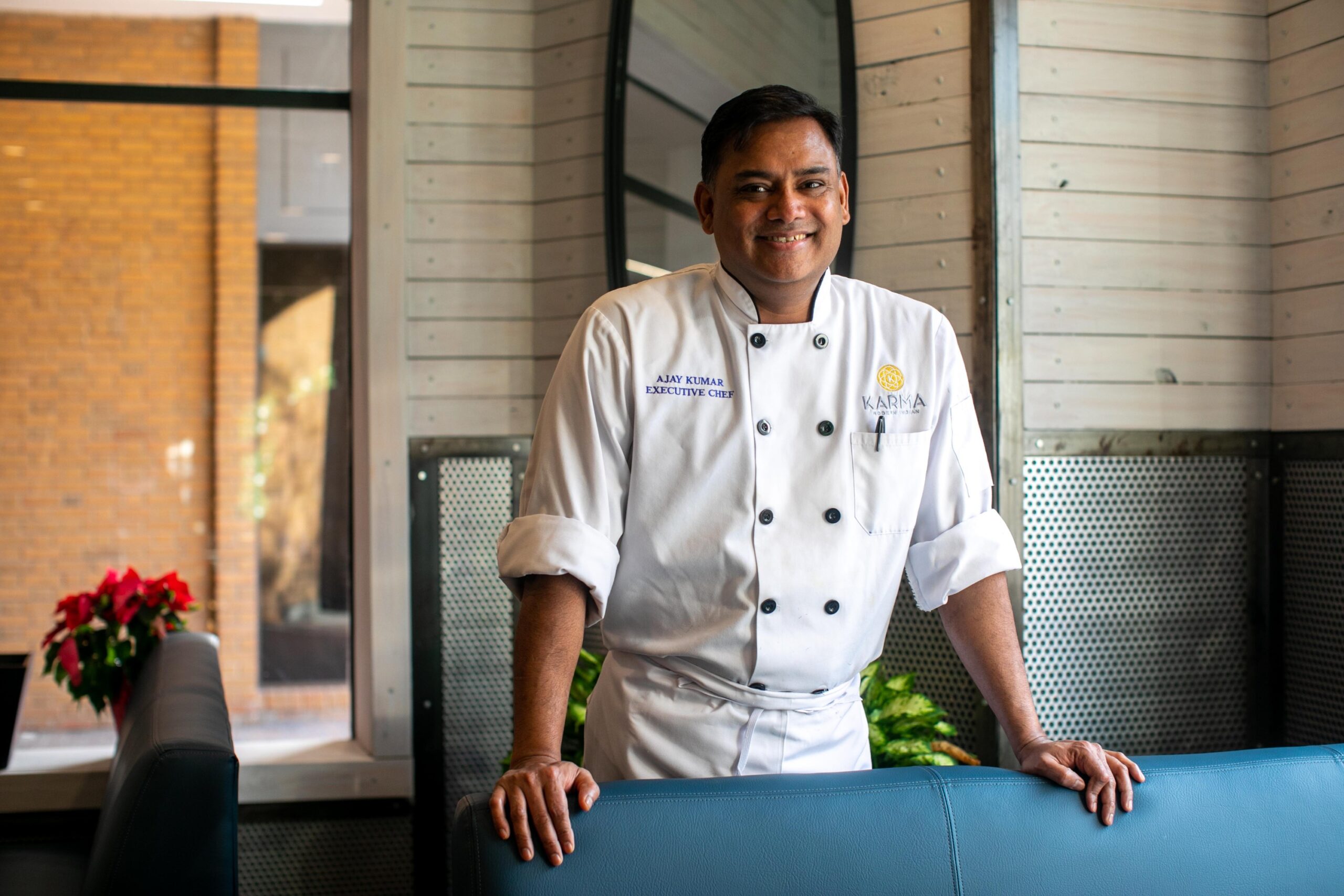 Chef Ajay Kumar is sitting in a window booth at his newly opened spot Kismet, an upscale Indian restaurant in Old Town Alexandria. But his crisp white chef jacket says Karma, the name of his other Indian restaurant in Penn Quarter with a Michelin Bib Gourmand award. “Supply chain issues,” he shrugs apologetically.