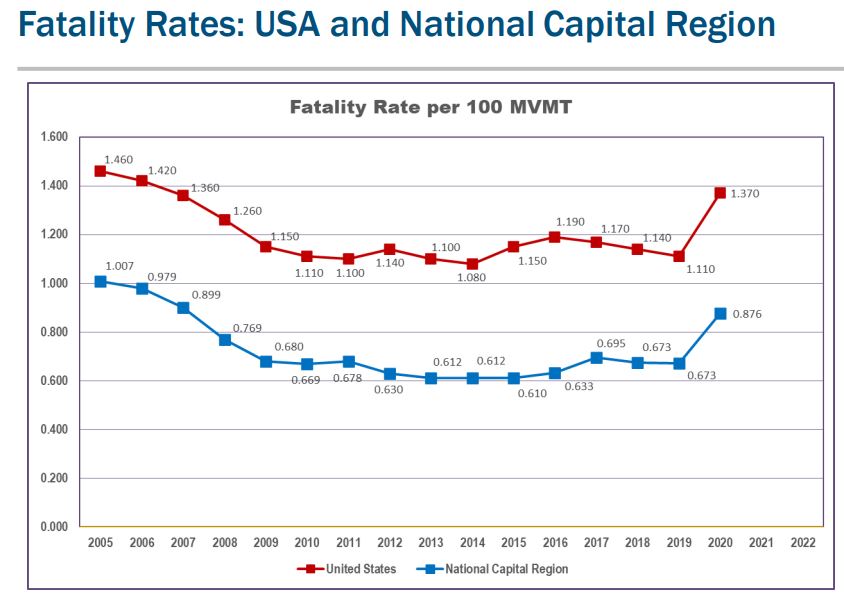 Elsewhere in the region, Prince William County in Virginia and Prince George’s County in Maryland had the highest number of deaths in recent years, too. Prince George's County aims to eliminate traffic deaths by 2040 and has identified a network of high-risk stretches for pedestrians and cyclists, almost all of them are within the Beltway.