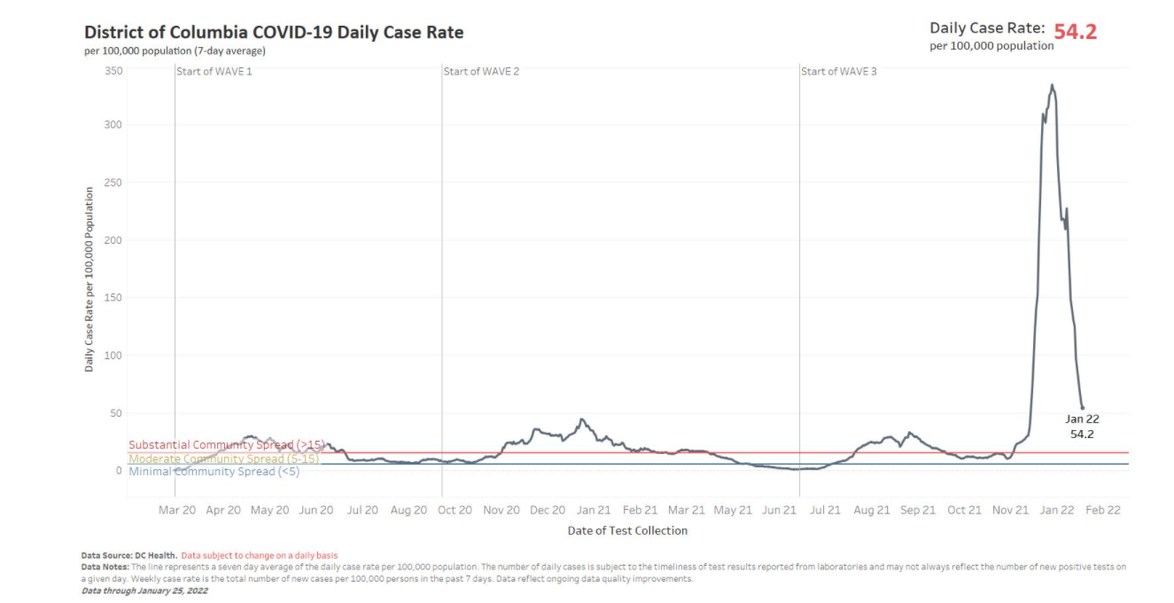 While highly-contagious, the Omicron variant does not appear as lethal as others, particularly for those who are fully vaccinated and boosted. The substantial community spread and vast number of infections meant more people were getting sick and in need of hospitalization. The D.C. region also started reporting a concerning number of deaths related to COVID-19 in mid-to-late January. Most of the victims were unvaccinated.