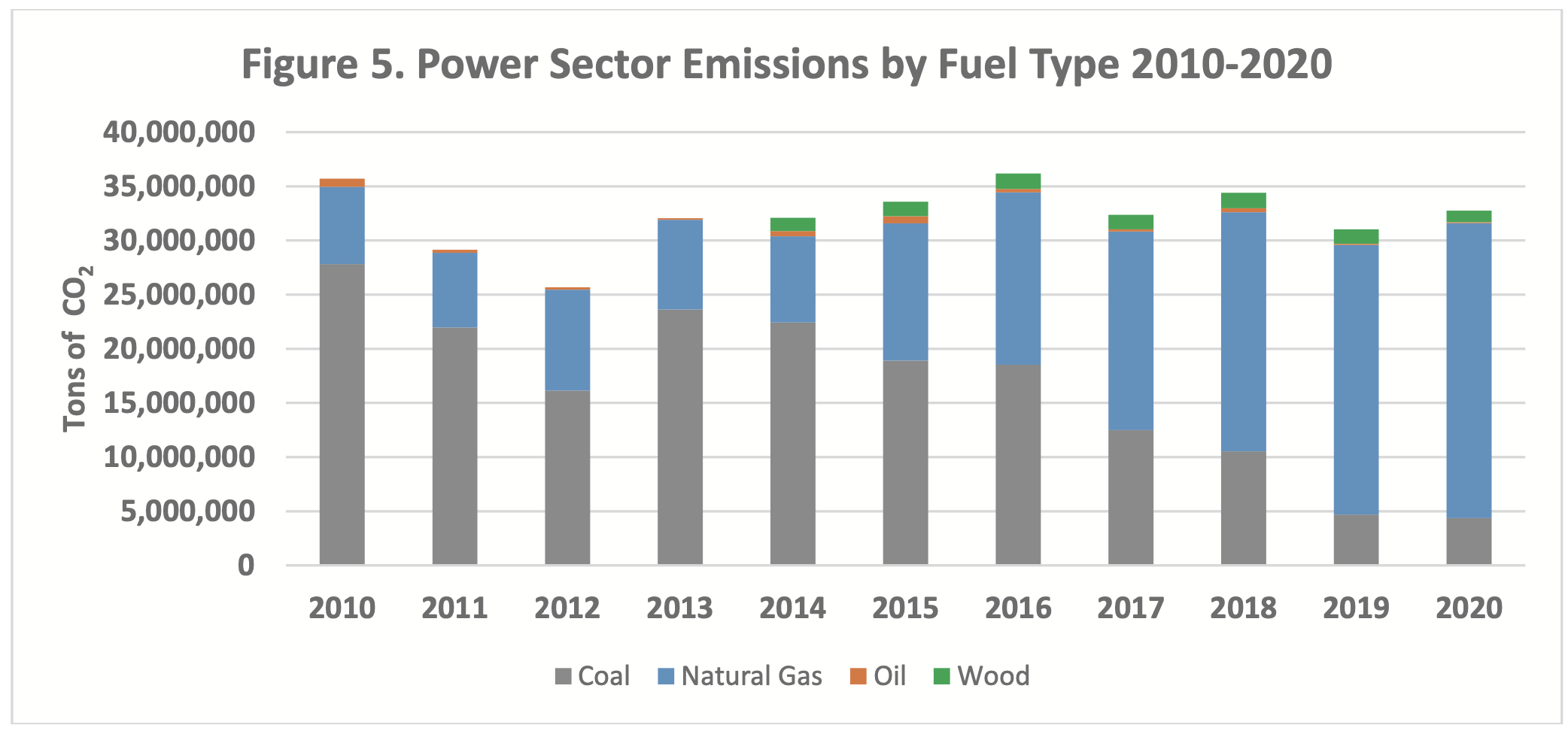 The report does acknowledge that emissions in Virginia have dropped since the Commonwealth joined RGGI, but asserts without further explanation that “this cannot be directly or solely attributed to RGGI participation.”
