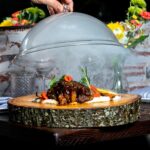 Today, diners are hit with the scent of sweet smoke from the wood burning hearth at the center of the open kitchen when they walk through the restaurant’s front doors. The dining room has 62 seats under its cathedral ceiling and massive windows with views of downtown D.C. Eucalyptus branches adorn the walls and woven rope light fixtures hang from the center of the room.