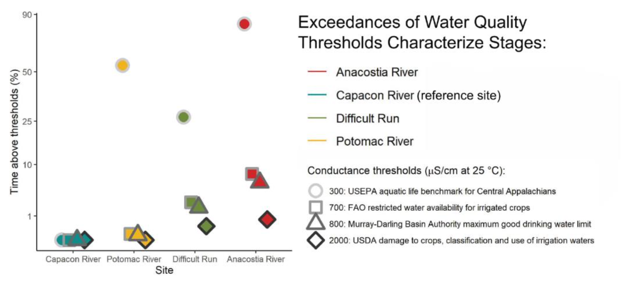 Sujay Kaushal, the UMD professor who led the study, says tracking the health of a body of water is similar to tracking the health of a human body. “If you don’t know where you are on the scale of your blood sugar or your cholesterol, you don’t know whether you have a problem or not,” Kaushal says. “When we have risk factors, guidelines and stages, we can effectively manage things.”