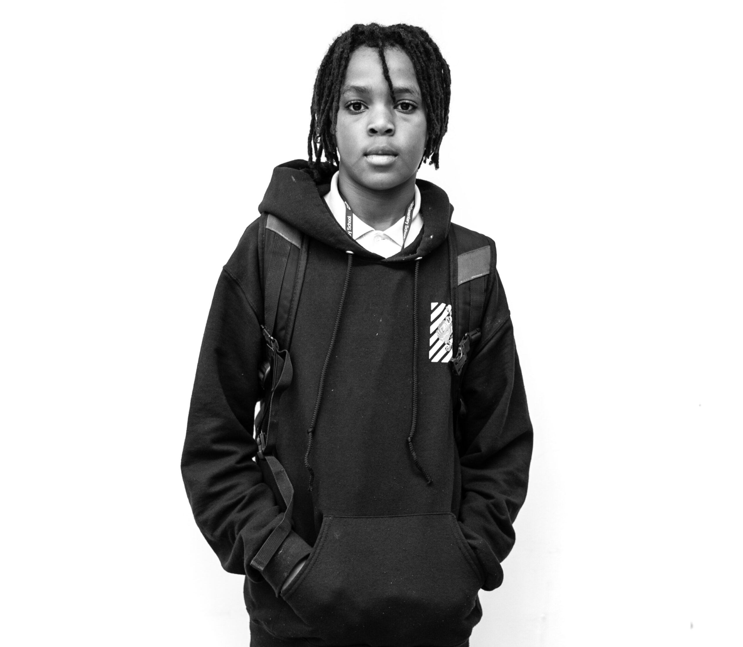 I like the teachers, the subjects [at school]. They’re nice – some of them. I just moved here. [To me, support looks like] love. [I’d like to see more] food trucks, ice cream trucks. More activities. No bullying. No getting in trouble for little things. More parks, more stores … more houses, more apartments, less guns, less cases — like murder cases, break-in cases.