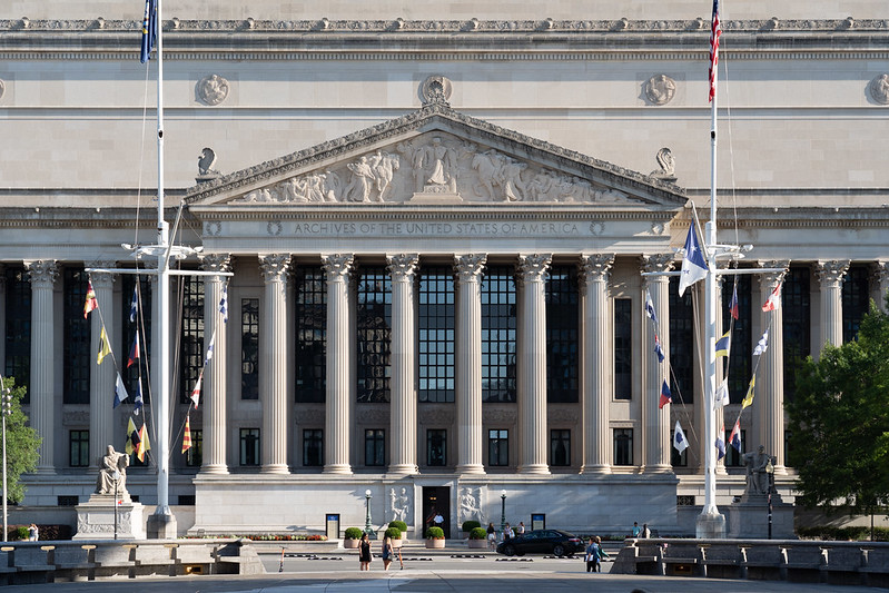 At the National Archives while viewing the Constitution next to a middle school tour group: