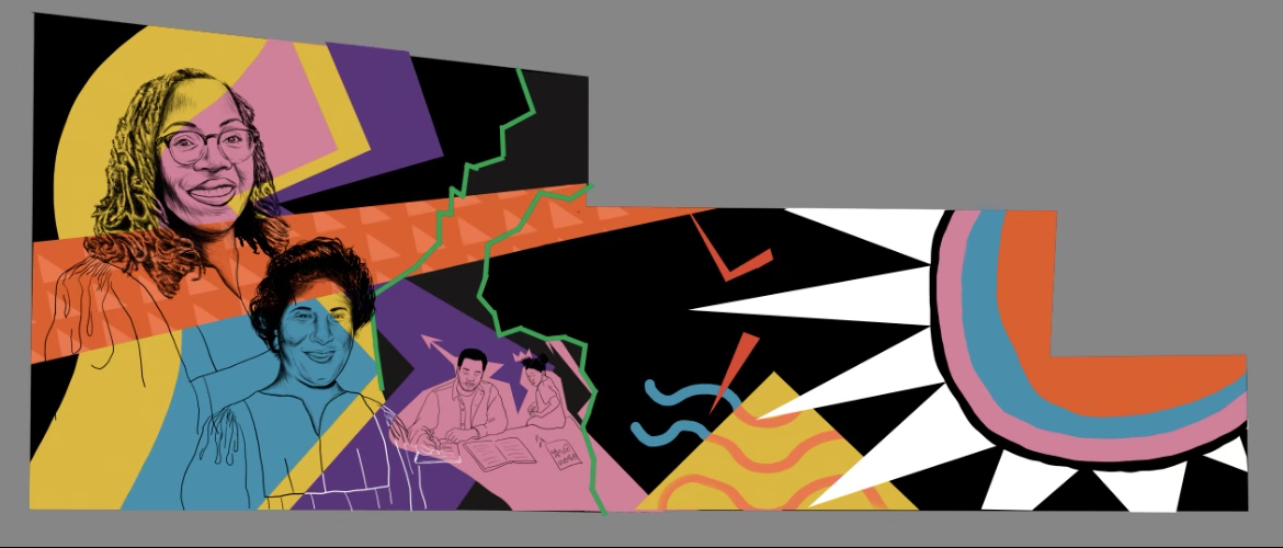 When completed, the mural will show a portrait of Justice Jackson, along with her father, Johnny Brown, who was also a lawyer, and Constance Baker Motley, who served as the first Black woman federal judge and wrote the original complaint in the case of Brown v. Board of Education. Calhoun says “to put those two people on the mural with her, it feels good to celebrate that history she’s rising from while celebrating this moment.”
