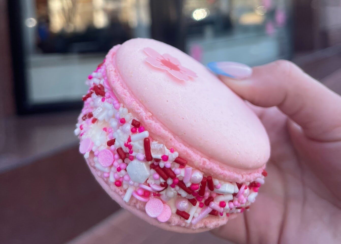 By this point, I wanted to wrap up the day, but I soldiered on and stopped by Foxtrot to try out their cherry blossom latte. I was surprised to find they had an amarena cherry macaron. The latte was a bit of a letdown—it tasted like a regular iced coffee with oat milk. (Again, this may be on me; I heard from others that it tasted more floral with other milk options.) The macaron saved this trip, however. It was oversized, and had a crunchy exterior and chewy interior, and a light, whipped frosting surrounding the syrupy Italian cherry. Plus, the blossom pasted on top with the colorful sprinkles made it such a fun treat. By this point, I thought I couldn’t stomach more sugar, but this macaron was just too pretty to resist. That final sugar rush told me it was time to go home where I later found myself eating pasta with butter to soak up all the sugar.