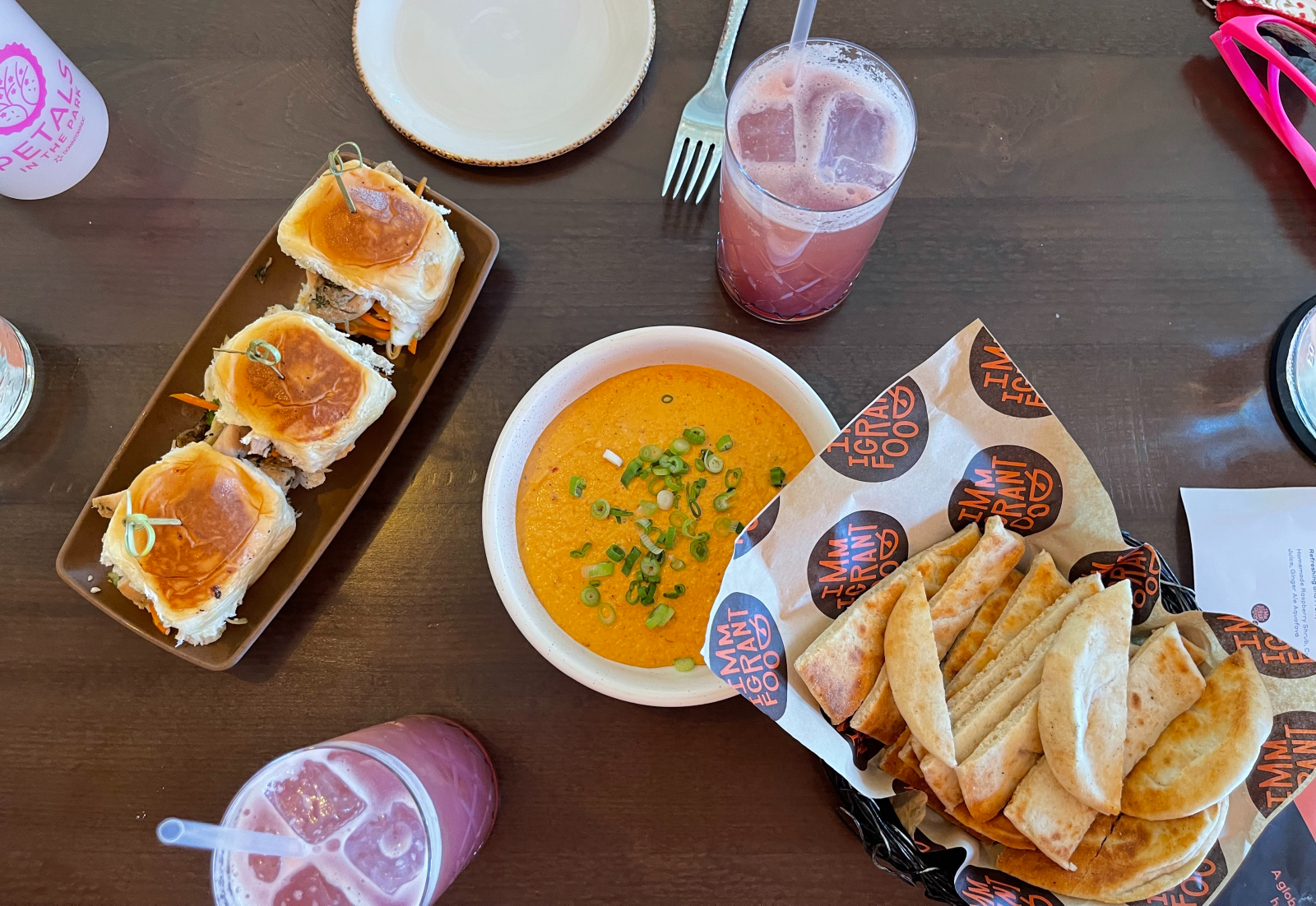 This fast-casual restaurant’s outpost at Planet Word Museum is perfect for a happy hour — or in my case, a midday break in the nonstop sugar rush I had so far been on. The harissa hummus and adobo chicken sliders aren’t cherry-blossom-themed necessarily, but I needed some salt and sustenance. Immigrant Food+ had a separate bloom-themed menu with a pink dragon panna cotta, pink tres leches cake, and a sakura sour cocktail, but I chose the Tidal Basin mocktail. With raspberry shrub, cranberry juice, ginger ale, and aquafaba, it was the most refreshing drink I’ve had in ages, and was just the thing I needed to bring me back to life.