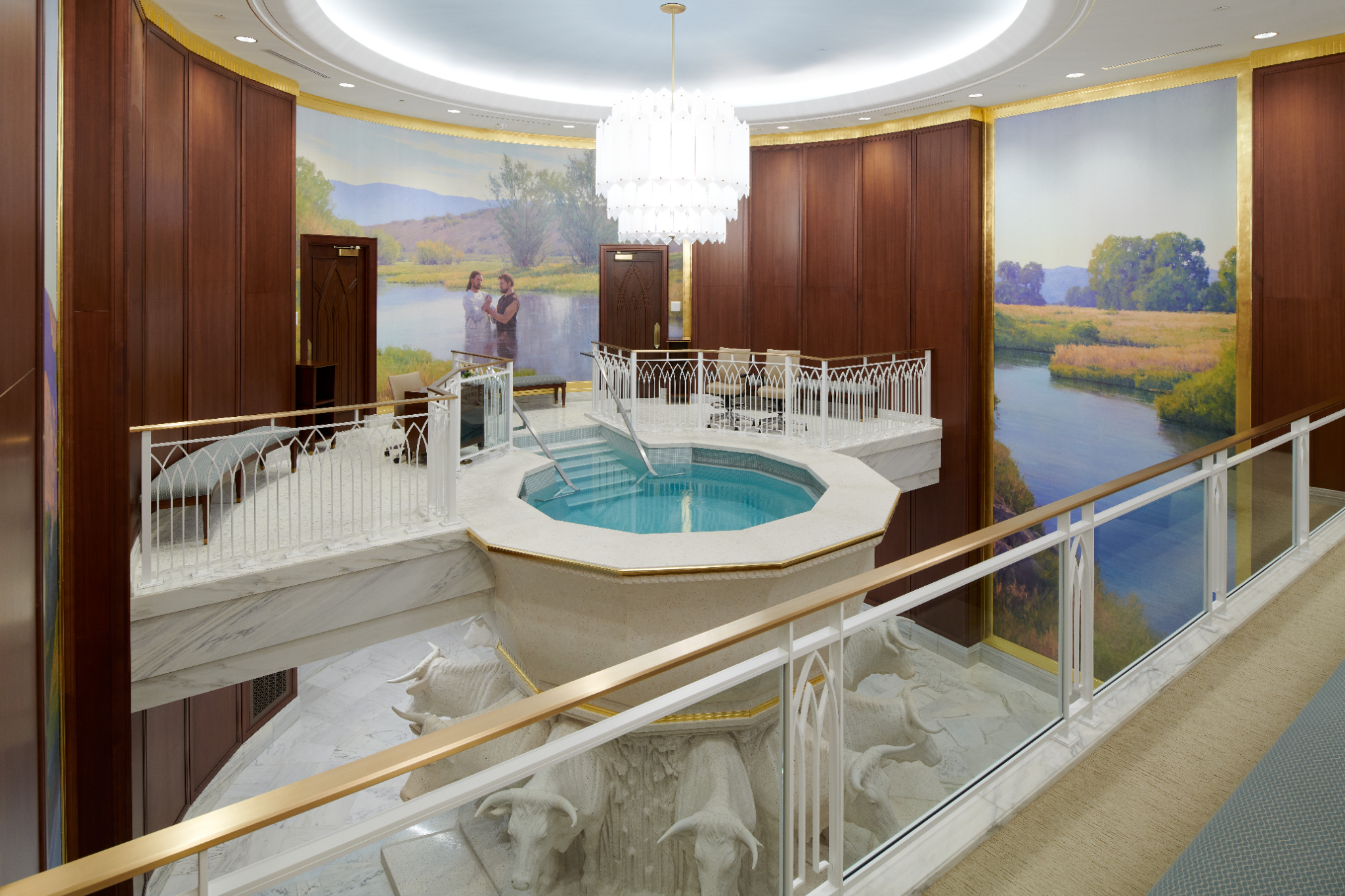 Visitors can expect a large baptismal font atop a decoration of a dozen oxen, designed to represent the 12 tribes of Israel. This is where members baptize ancestors who did not have the chance to join the church during their lifetime. (Posthumous baptisms help explain the importance of genealogy in the LDS Church.)