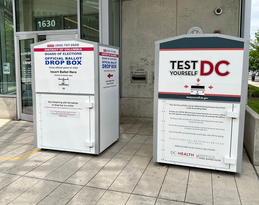 Of course you may notice that the ballot boxes look exactly like the boxes where residents can drop off COVID-19 tests. Fear not: Councilmember Charles Allen (D-Ward 6) tweeted that “both drop boxes are checked multiple times per day & they’ve coordinated just in case someone drops a ballot in a test box, or a test in a ballot box.” That’s a relief — the last thing we need is Councilmember COVID-19.