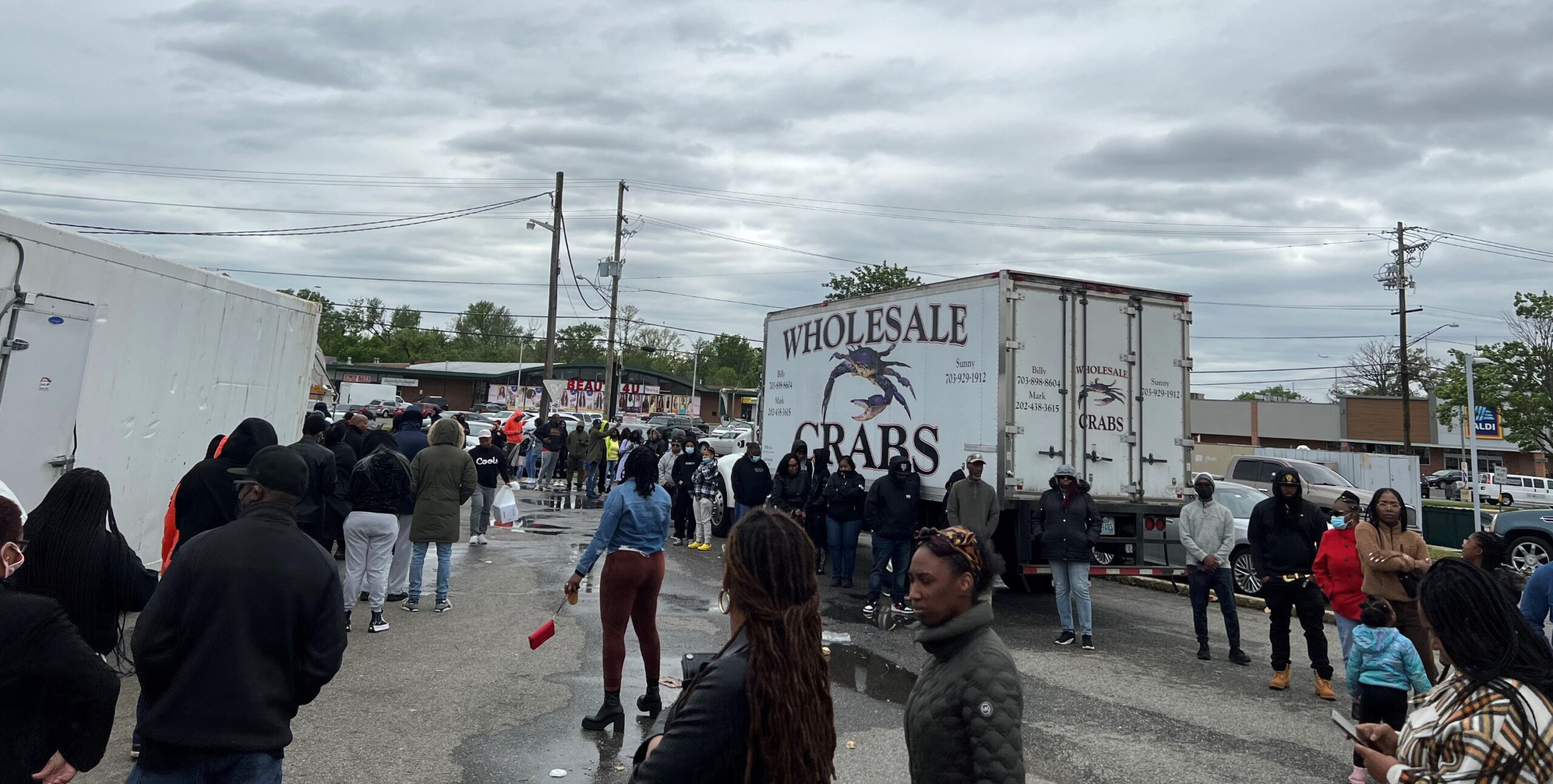 So now they sell their seafood near National Harbor, after publicizing the relocation through word-of-mouth and on social media. On Mother’s Day afternoon when DCist/WAMU visited, a neat, single-file line of about fifty people waited patiently to pick out live crabs as Usher’s love songs played on loudspeakers. Most cars were parked in the designated spaces — which are free of charge — while others were parked next door in a closed bank’s parking lot.