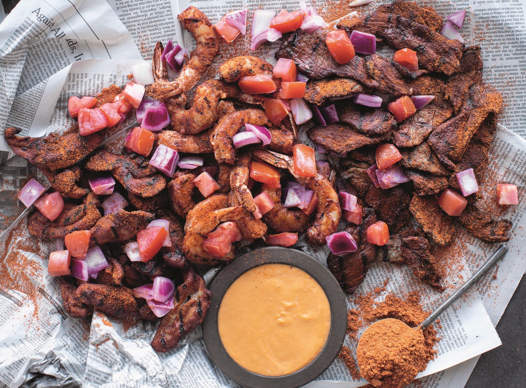 His second restaurant, Kith/Kin, told the story of not just himself, but his people. The menu of the restaurant in the Wharf Intercontinental Hotel reflected seafood gumbo he remembers his mom making as a kid, buljol (salted cod salad) and roti (flatbread) his Trinidadian grandfather made and suya (grilled proteins Onwuachi refers to in the book as “the grandfather of American barbecue,” and a recipe for which is included below) and fufu (a starchy accompaniment for stews) he remembers eating in Nigeria when he went to live with relatives there as a child.